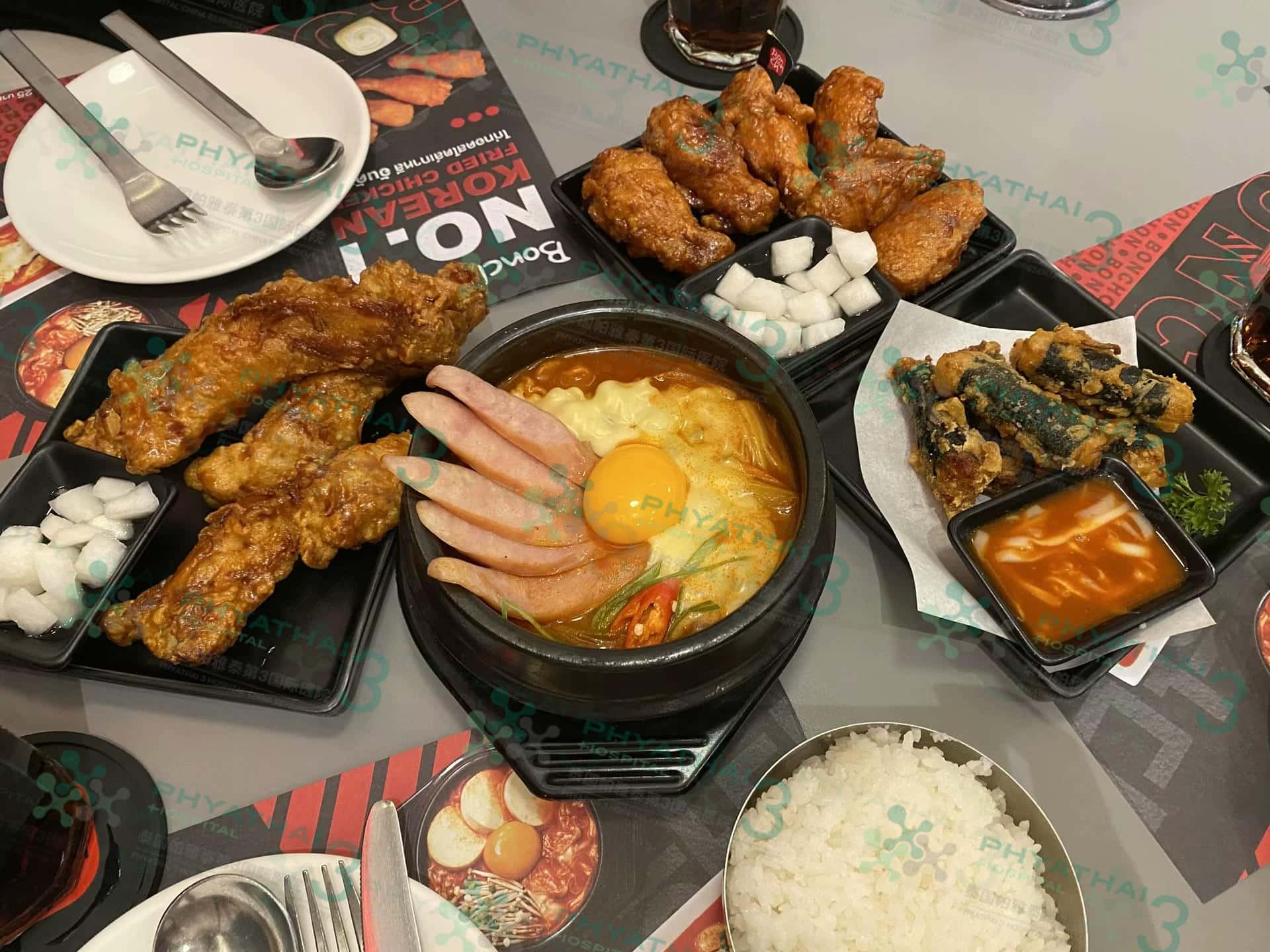 今天来推荐一下在泰国最好吃韩国炸鸡店~ 在泰国没有谁不认知 “BONCHON” 店,这个店来自韩国,菜单也是很丰富!最有名一定是他们店的炸鸡~味道也是有很多味道可以选!原味、中辣、特辣,外面炸得很脆,但是里面滋润,开始吃一口就不能停下来了 嘻嘻~ 今天我点了5种菜 : 炸鸡,方便面泡菜汤,炒年糕 和Kimmari~真的很好吃不信就看最后的图片吧!都吃光了 哈哈哈哈哈