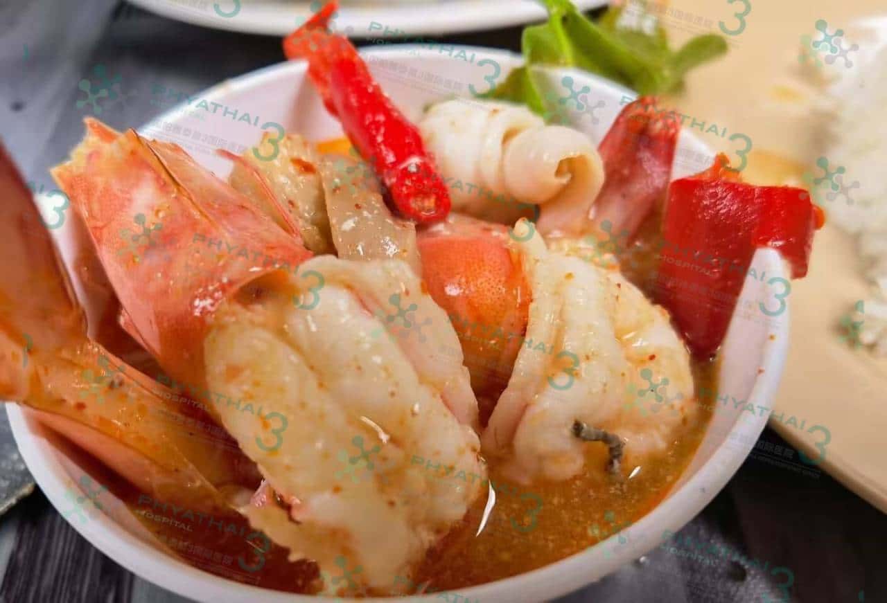 在泰国的患者姐妹必吃的两个经典泰国菜,冬阴功海鲜汤和猪肉末煎蛋。冬阴功的话其实可以煮不同的食材,但推荐大家还是要首选虾肉的才正宗和具有代表性,新鲜的虾肉加上椰奶,总的酸辣口味汤非常爽口,不愧是泰国菜,这样的口味真的特别适合夏天.第二个肉末煎蛋看似平平无奇的一道菜实际上味道特别好吃,姐妹们只要试一次应该都会爱上哦