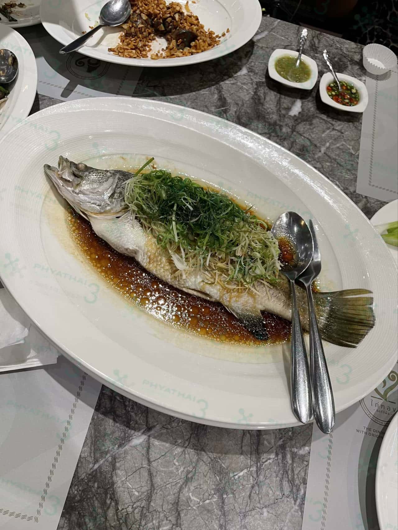 泰国美食餐厅“Kai Thong“,无论是饭菜还是甜品 味道都是很倒胃,本店特色酱油蒸海鲈鱼 鱼肉白柔嫩、酱油香醇诱人 酱油浇在热腾腾的白米饭上味道好极。泰国俗话说:吃腥不吃甜 人根贫穷,吃好饭菜也要品尝一下甜品,本店特色甜品 泰国茶冰沙,姐妹们想点甜品需要提前点半小时因为是需要排队的噢