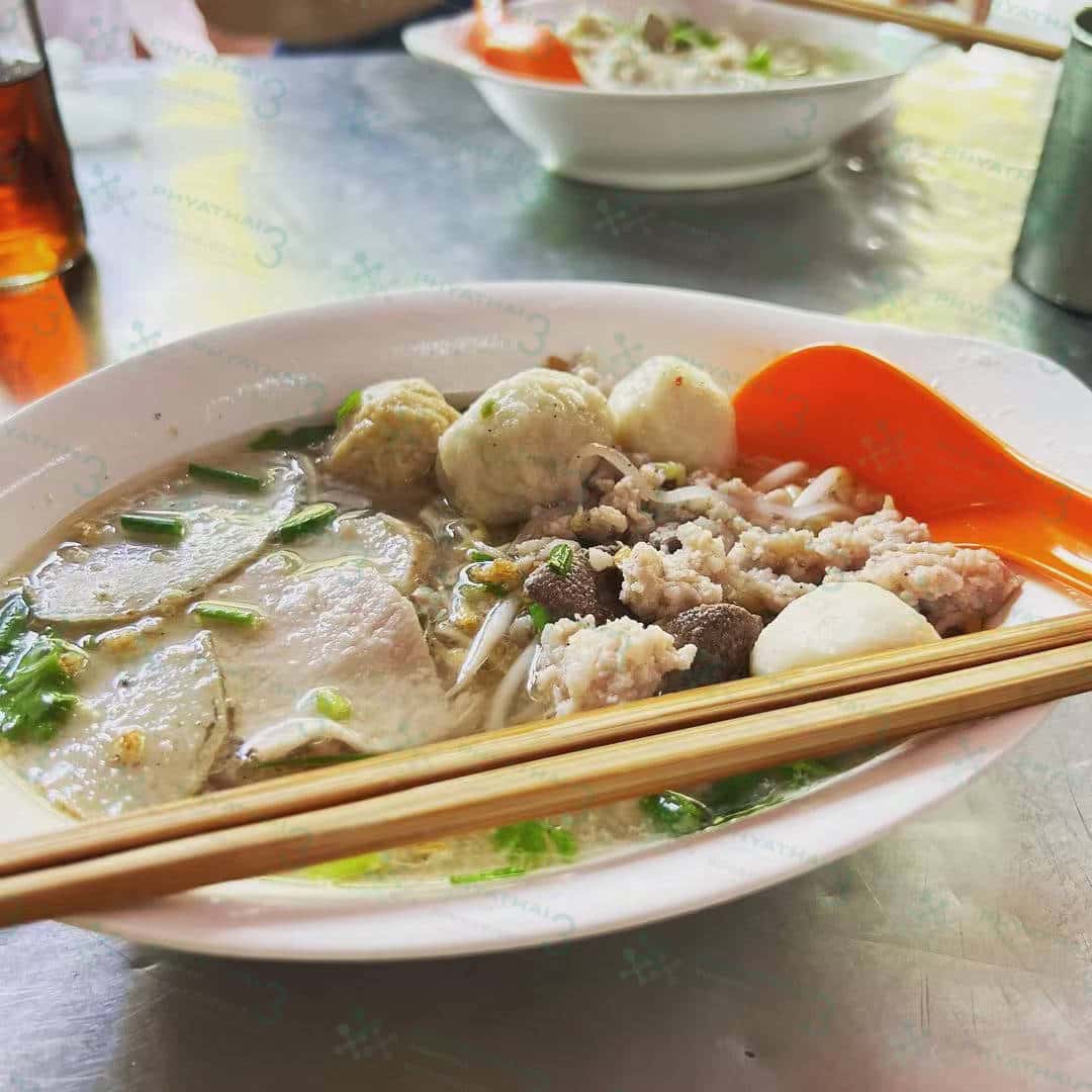 bts走路5分钟老字号泰式米粉汤店 ! 如果你喜欢吃泰式米粉汤,那一定要来试试这间位在BTS Thong Lo站,有着40年以上历史的泰式粿条老店“ แซว Saew ” 店家每日都会购进新鲜、干净的食材来制作粿条料理,就连调味料也都是由店家自己特制的~ 最受客人称赞的粿条汤头,是由大量猪骨熬煮而成,非常浓郁。 推荐菜色:清汤宽面、酸辣鸡蛋面(干/汤)、猪肉末汤。