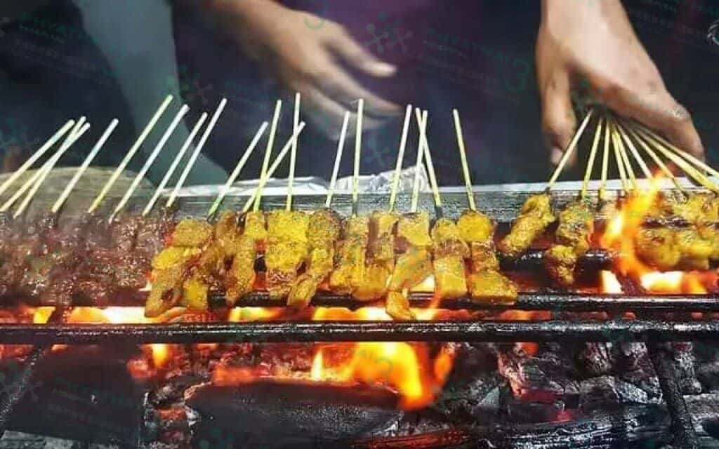 国民美食沙嗲串烧、是一种泰国的烤肉串,