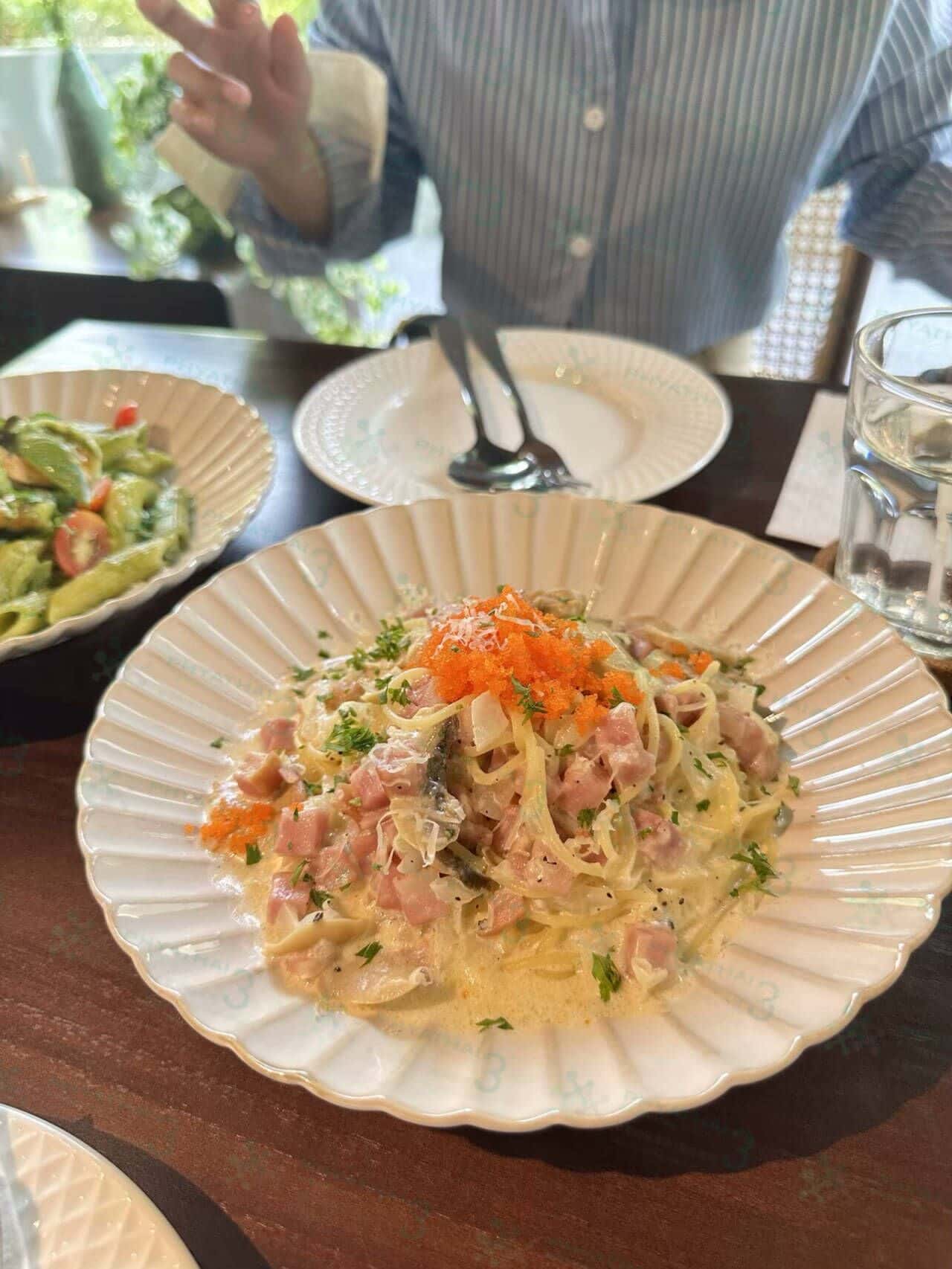 曼谷|家庭式意大利餐厅【Pasta Ama】 这家店的名字是“阿妈意面”,那这家店最美味有名的菜当然是意面了。除了食物的味道特别好吃之外,我很喜欢的另一部分是餐厅的氛围,好像来朋友家吃饭舒服的感觉。我们点的菜很快就来了,满满一大碗量,份量太足了。我十分推荐“白奶油酱意大利”芝士奶香浓郁 多吃也不腻。餐厅离我们察殿沙吞酒店比较近 开车十分钟就到了,姐妹们到泰国可以过来品尝一下噢