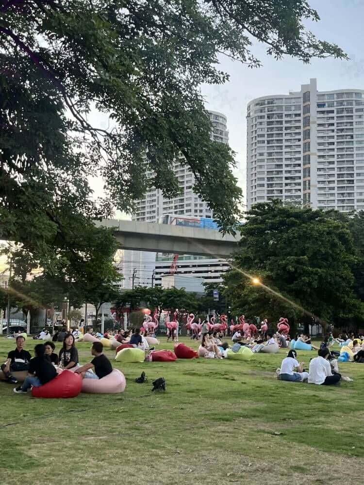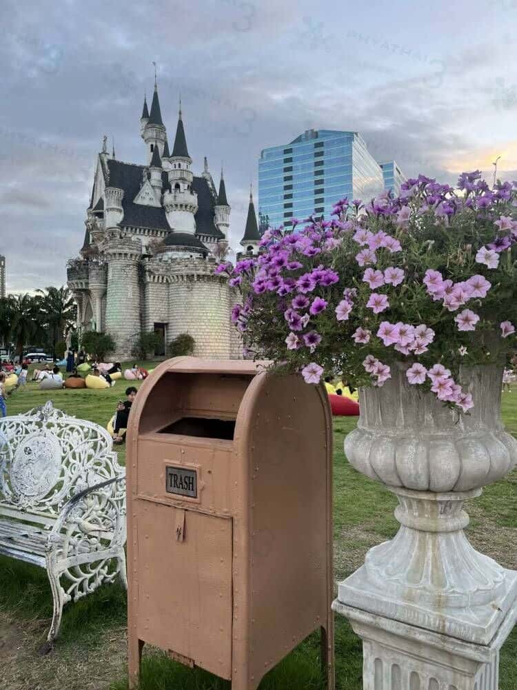 是现在泰国曼谷必打卡之一 因为是新开的 其实是之前的火车夜市 移到这里市中心 坐地铁走一走就到了哦 这里很多很多好吃的 泰国特色特产 最主要大家来拍照打卡的是城堡 城堡前面是免费可以坐着休息休息的 真的很舒服 人不是很多 就刚刚好有很多座位 有时间下午不热的时候来打卡打卡哦