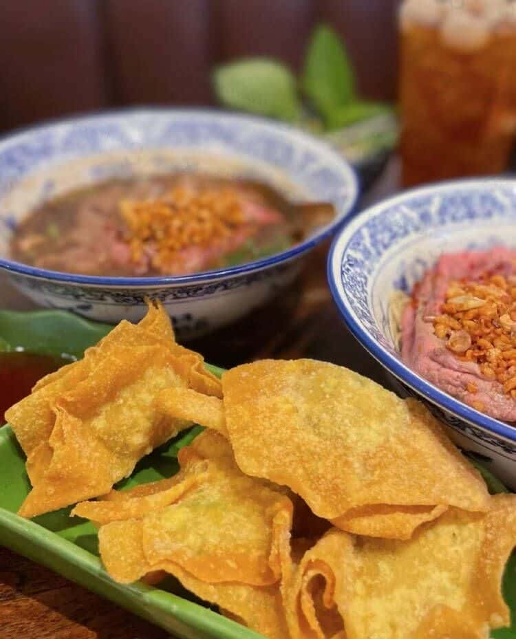 这是一家泰国各大商场连锁的传统船面餐厅。里面可以吃到正宗的泰式口味,比较推荐和牛系列,不论是干拌还是带汤的都很好吃,个人比较喜欢带汤的整块牛肉配上浓郁的汤汁,软糯的河粉一口下去真的超级爽。还有碳烤丸子和酥炸馄饨皮,店内推荐的这些姐妹们一定要点勒试一下,喜欢吃清淡的姐妹也可以尝试清汤系列哦,搜索点名很容易找到
