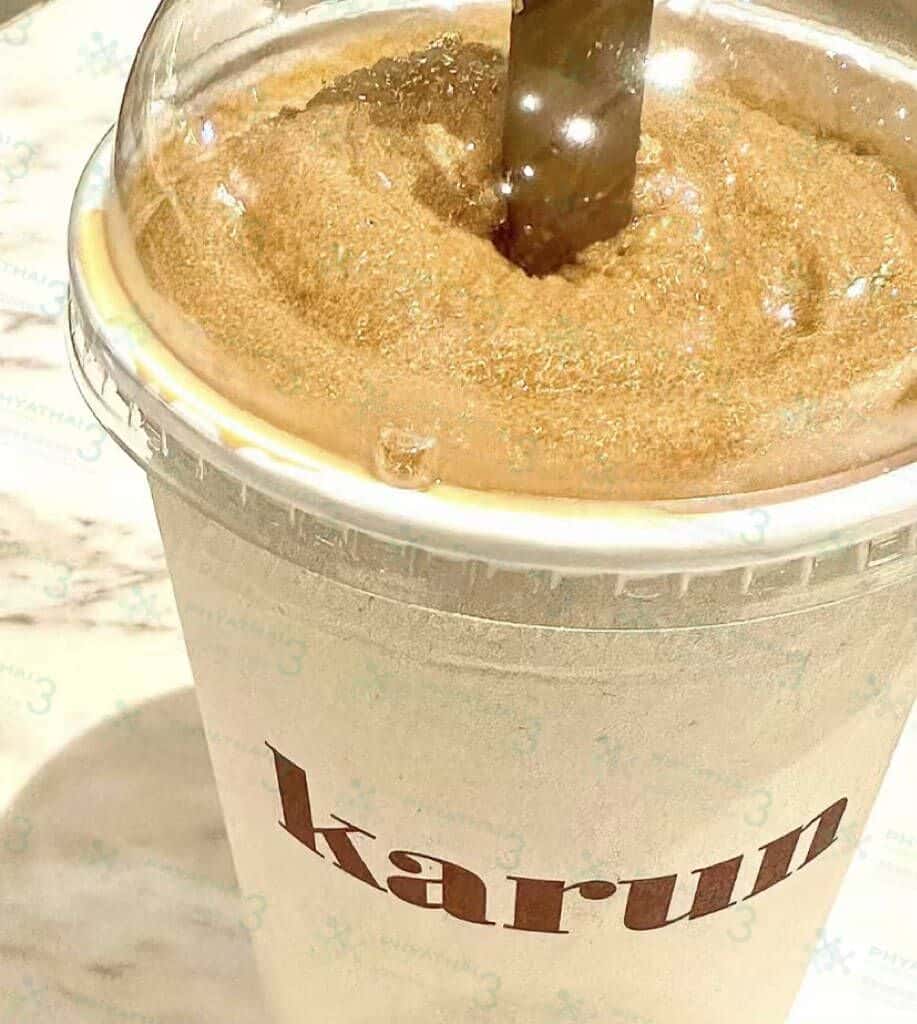 泰国奶茶天花板,这家隐藏的宝藏Karun奶茶味非常浓郁 喝起来甜而不腻。两层纸杯设计的非常有心,拿着冷泰式奶茶或者冰沙也不会湿 手也不会冰冰的,再配上精美的金色吸管 真的是又好看又好喝呀