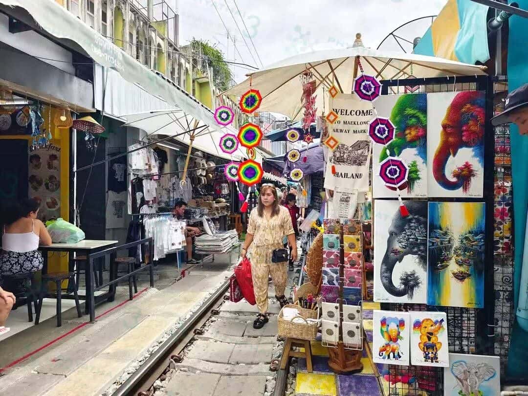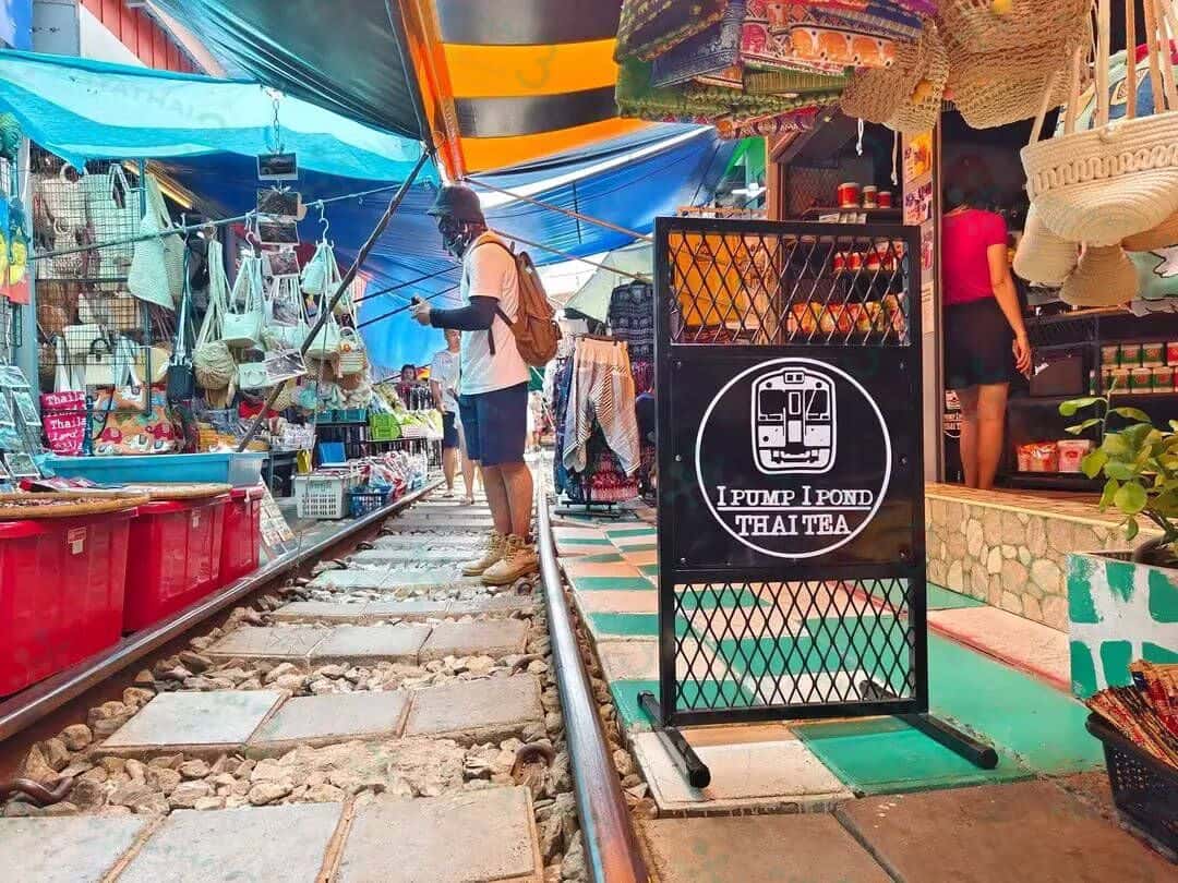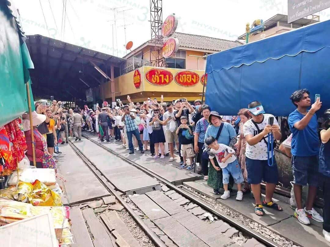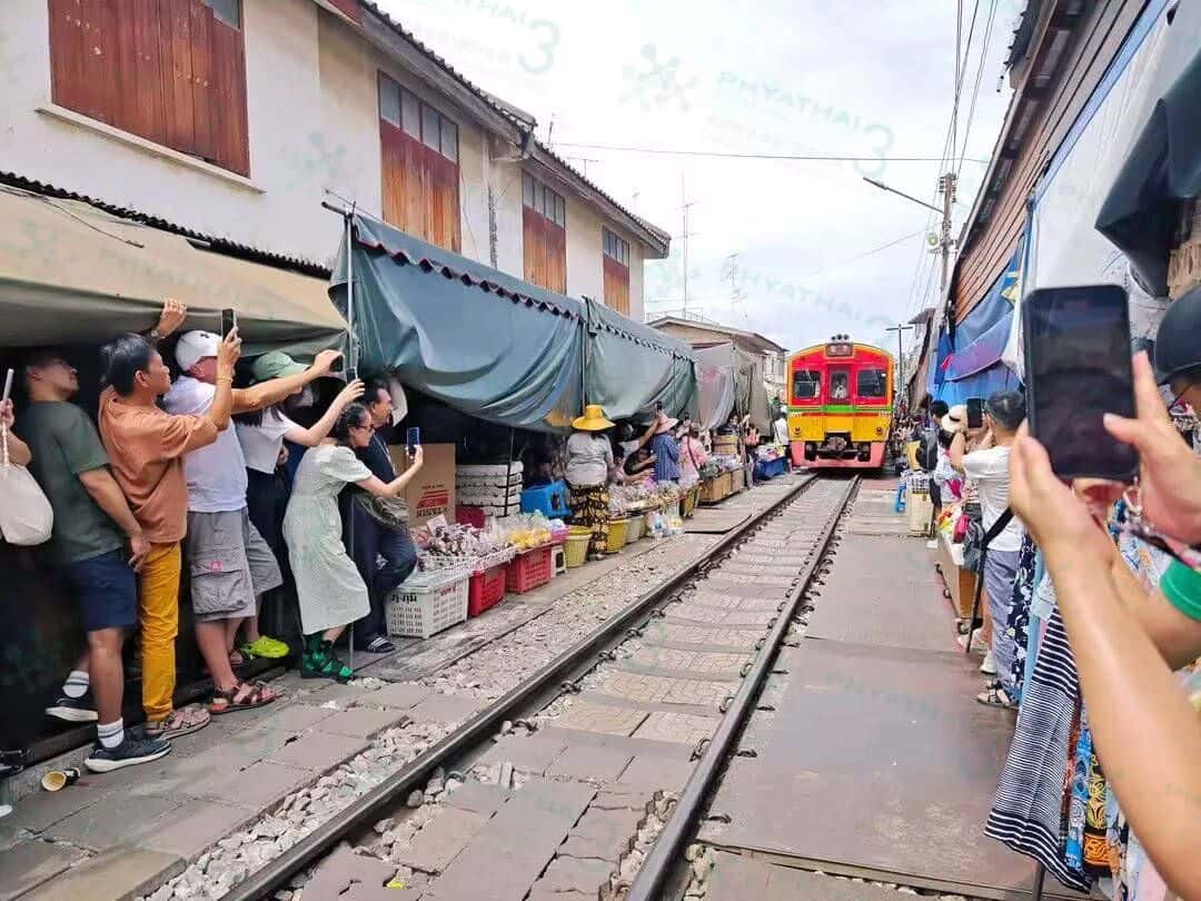 说到泰国出名的市场除了家喻户晓的水上市场之外,还有全世界独一无二的铁道市场。这个与众不同的菜市场位于铁道两旁,可以看到铁轨两旁传统市集摆摊的特殊景象,每当火车开过时,摊贩们都要搬运货品和收起遮阳篷。不紧不慢的将原本摆在铁轨上的蔬果、生鱼、鲜肉收起来,游客看着火车底盘开过生鲜商品后,市场又回到没有火车前般的营业,当真是世界奇观呢!