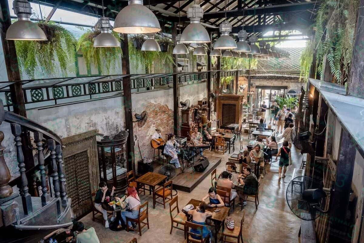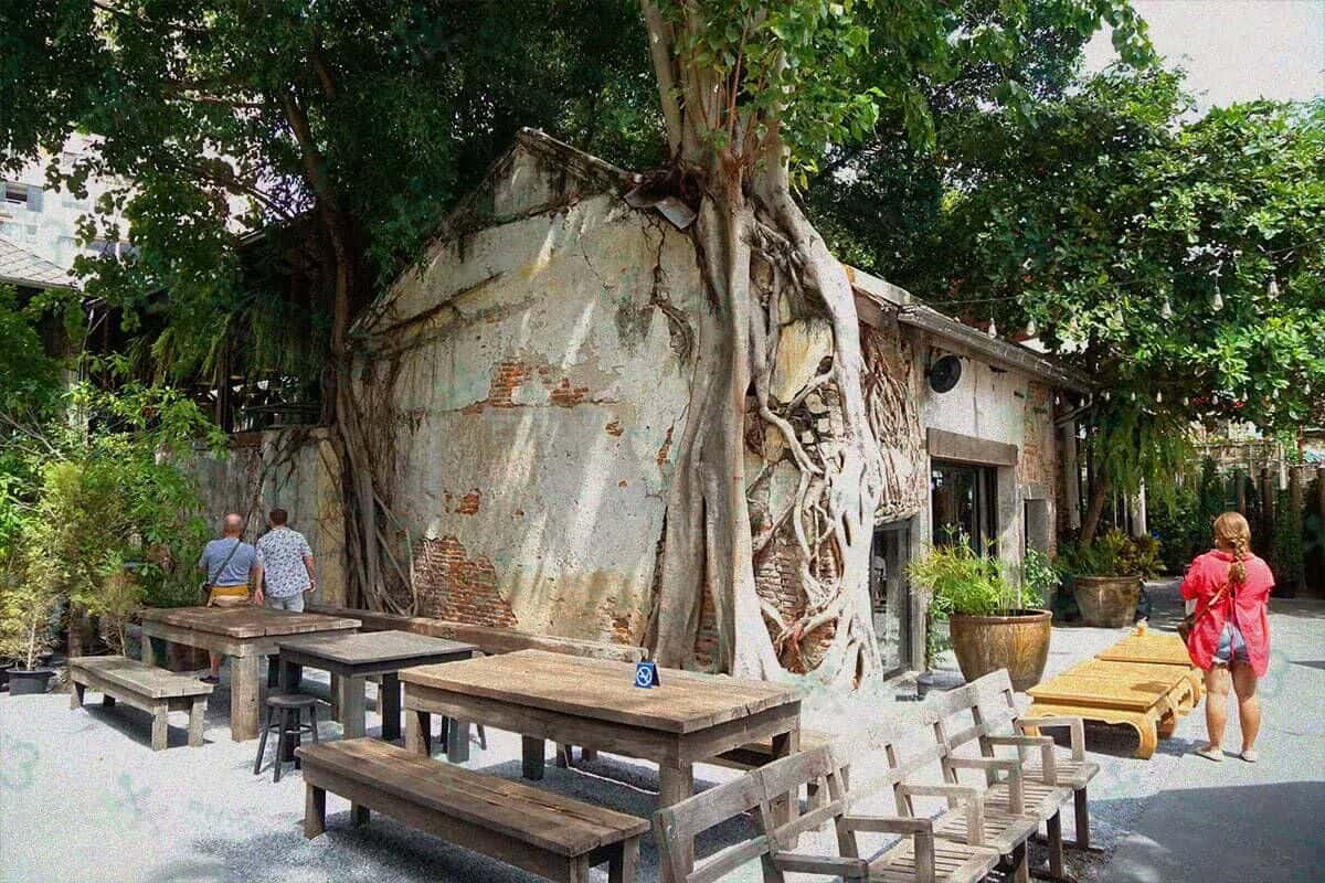曼谷超过200年历史的河畔老屋 巨树攀附的百年老屋、古董桌椅及各式古物收藏、每周五到日的Live演奏、加入了泰国风格的甜点。只要穿梭过旧城区小市场(Talot noi)的重重小巷,就会看到这间充满了各种迷人元素的老屋咖啡厅“Hong Sieng Kong”!(音似:红香功) 古色古香的挑高空间像座博物馆,连接着昭披耶河岸有许多露天座位,还有一颗守望着老屋的参天巨树。 Hong Sieng Kong 的菜单选项很多,有泰式咸食,也有轻食与甜点蛋糕,约先生和其他帕3姐妹在午后,听着音乐待到夕阳慢慢消失不见,真的是泰舒服、泰休闲了!