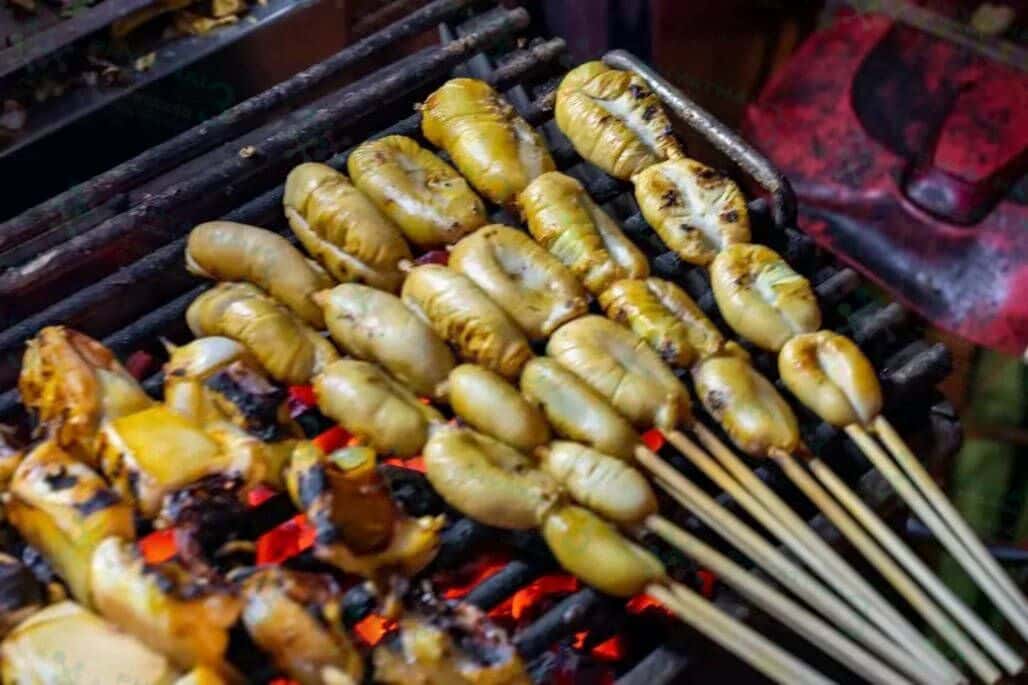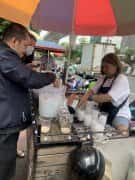 值得推荐的唐人街打卡点-炭烤超酸辣鱿鱼 曼谷「唐人街」耀华力路,白天车水马龙、人声鼎沸。 到了晚上,化身为有名的小吃街。 现在最火爆的就是烤鱿鱼了,鱿鱼的种类很多,而且还区分不同部位,如墨鱼口、鱿鱼蛋、鱿鱼触手、鱿鱼、墨鱼、大鱿鱼,小八爪鱼、鱿鱼脆骨等,价格也不一 。 一串串墨鱼和鱿鱼在炭火架上被烤得金黄,然后切片,加上酸辣爽口的海鲜蘸料和香菜,一口下去绝了!超级辣!超级棒!