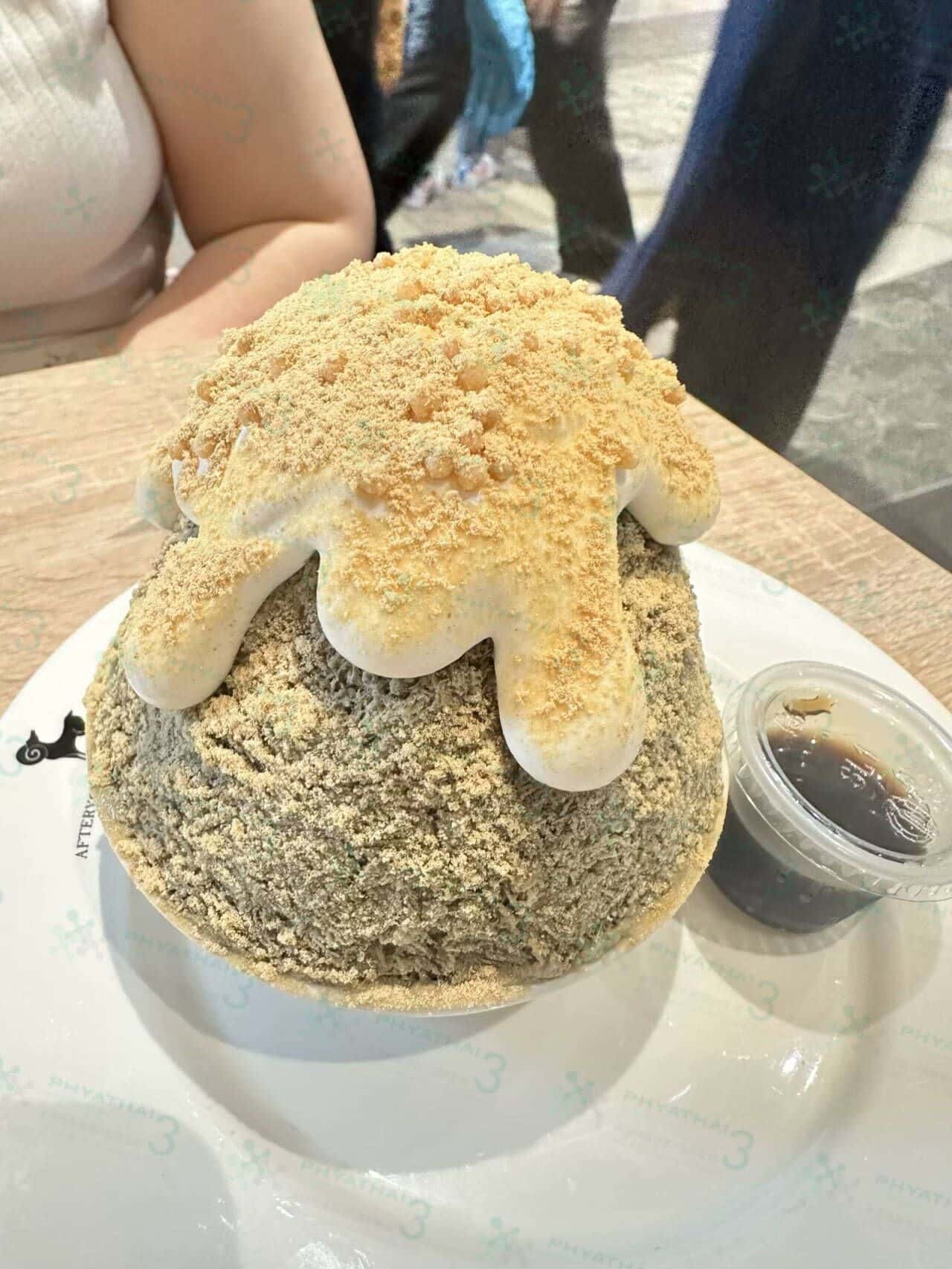 这家甜品店在泰国很火,不仅泰国当地,还有很多外国人排队呢。招牌冰沙绵绵冰入口即化,完全没有任何冰渣。刨冰多种口味可选,每一款都不同。今天我们点了Hojicha kakigori焙茶刨冰,焙茶浓郁,上面放满芝士奶油,加上下面打底的小珍珠Q弹,非常好吃,口感十足,来曼谷必须尝试一下哦