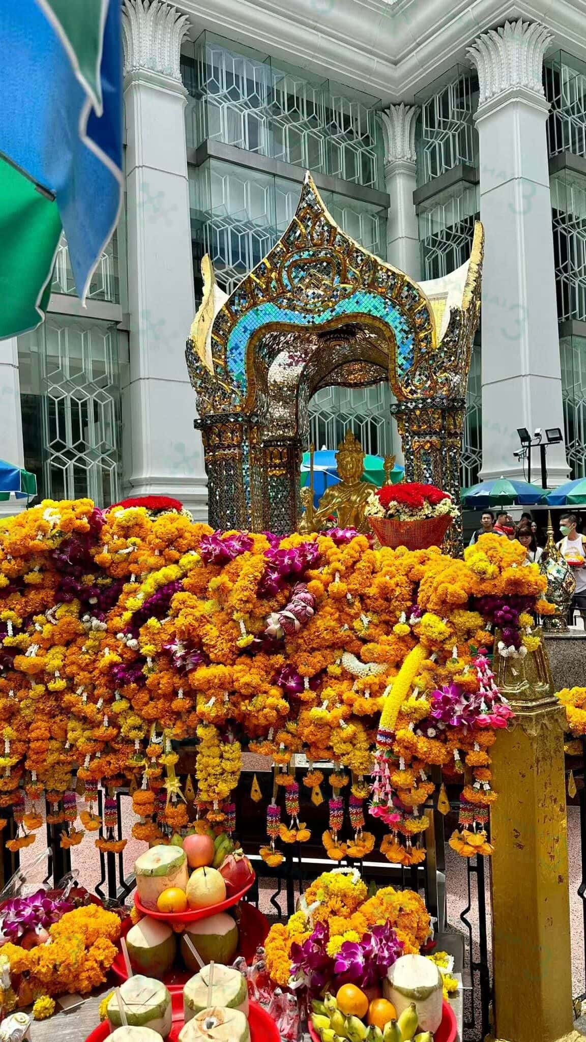 经过四面佛为小姐姐们祈福,四面佛是求子人必来打卡点。当地人称依拉旺神龛,人称”有求必应”佛,该佛有四尊佛面,掌管人间一切事物 也是泰国香火最旺的佛像之一。想来拜的姐妹,建议避免佛日,那是人山人海,也可以坐轻轨到Chitlom站走过来就到咯~