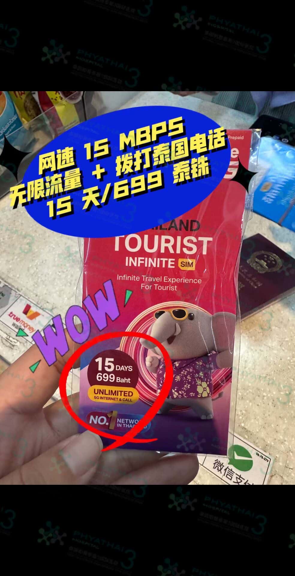 选择无限Unlimited套餐是网速最高15Mbps,无限流量和拨打泰国电话的套餐15天/699泰铢,适合喜欢刷视频、办工、看剧打游戏,需要高网速的姐妹