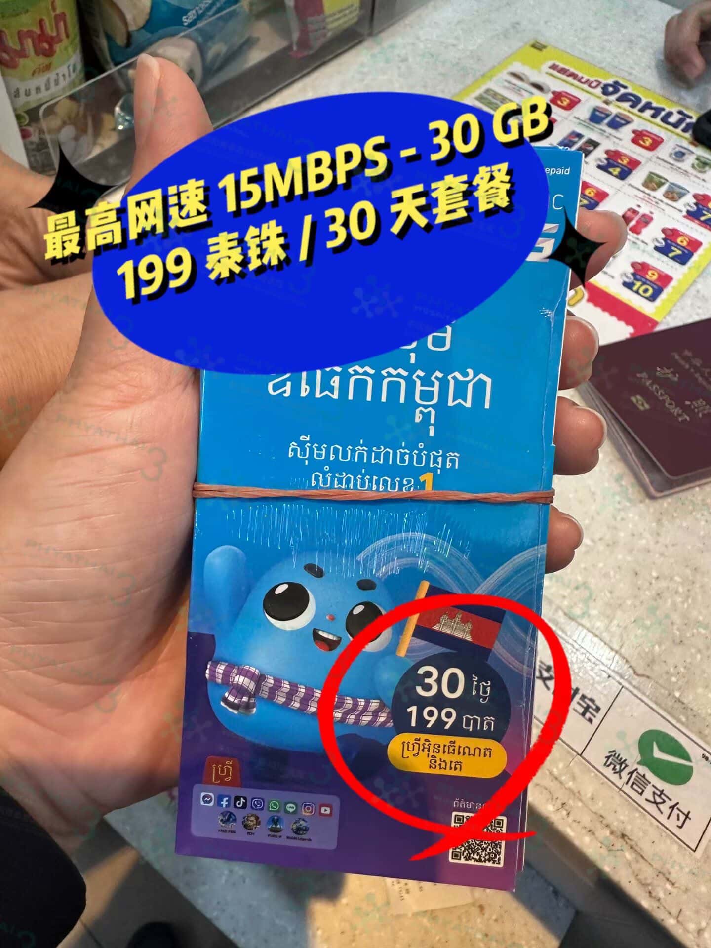 选择有限制的30 GB最高网速15Mbps的套餐,30天/199泰铢,适合回回信息,刷刷动态的姐妹们,一个周期14天也是足够使用了哦