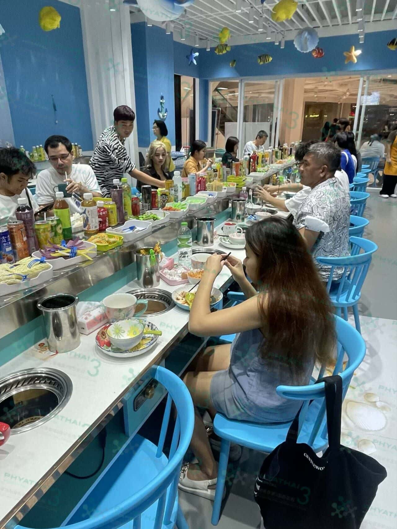 姐妹们你好,我们去Seacon bangkae吃四川火锅吧。串串四川旋转麻辣是刚刚开始营业的,老板和工作人员都会说中文的,好厉害。目前我们泰国大学生和青少年是很喜欢吃火锅的,串串四川旋转火锅综合中泰15种不同锅底,拥有自己的特制锅底配方和专业的生产加工流程,集合了中泰两国强大的供应链,保证食材的供应与特殊性,一人一锅,锅底四川麻辣锅底、泰式冬阴锅底、清油锅底、番茄、山珍菌汤、鸡汤锅底、猪骨高汤锅底,还有十多种酱料随意搭配。40多种美食,价格也是很便宜,锅底49泰铢,锅底6种任选其一,酱料39泰铢任意搭配,芝麻麻料、鲜、麻辣酱、牛肉酱、沙茶酱、生抽等多酱料随意搭配,如果姐妹们有兴趣就可以来,在Seacon Bangkae的B层