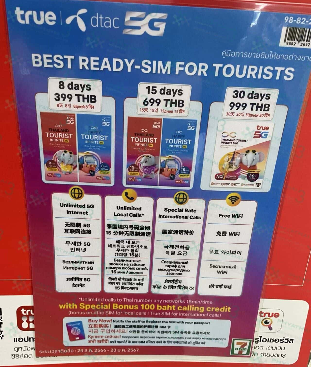 姐妹们你好,今天我来回答一下最近很多朋友们问的问题,就是泰国电话卡在哪里买的。姐妹们来泰国不用在国内淘宝买电话卡啦,到泰国后随便找一家7-11跟店员说要几天电话卡就可以了,最便宜是7天无限流量只需要10块人民币!真的超算、除了7天还有8天,15天或者30天就可以在7-11买的,所以姐妹们请放心。泰国电话卡是很容易买的
