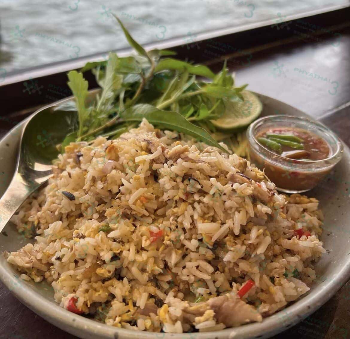 姐妹们你好,今天我们去Naam 1608 cafe吧。如果你们都想在水边找一家有清凉气氛的餐厅吃饭,坐下来看着美丽的光线照射在水面上,看着船只经过,享受乐趣和食物像在家里一样热腾腾,就来Naam 1608 cafe吧。这里是在Wat Pathumkongkha旁边,我是下午3:00左右来的,当时快要下雨了,但如果是日落时分来的话会非常美丽,建议先打电话预约,因为我是下午来座位都满了。我告诉你们哈,气氛真的很好,我是坐在水边,而且晚上好像还有现场音乐表演听着很爽。餐厅的菜单将包括泰国菜和传统泰国菜,包括甜品,品种也很多,我点的菜单是餐厅推荐的菜单,是新鲜的鱿鱼在阳光下晒干搭配特制的焦糖酱一起吃与辣椒,盐酱交替食用,味道有辣,酸,咸,甜,醇,非常美味