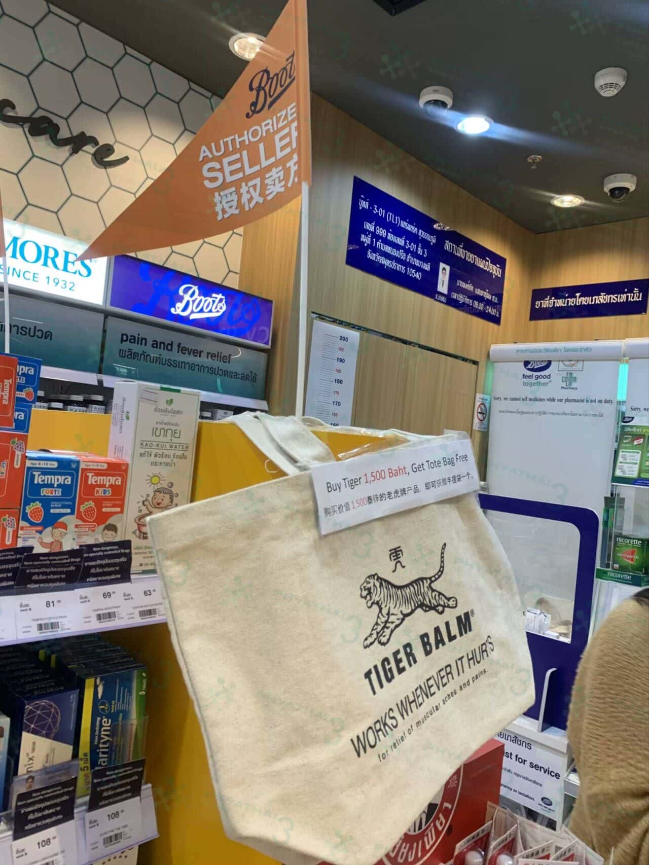 素万那普机场买实惠药店Boots 在3楼,不止有餐厅和咖啡厅可以打发时间,还有好逛的药店, 可以买到实惠又实用的手信回国。 家庭必备的肌肉镇痛膏和镇痛剂,比较出名的,有这个老虎牌,货品齐全,价格优惠。还有运动员都非常喜欢用的三种按摩膏也能在这里买得到。 更不用说非常出名的青草药膏。在这里逛一逛就能买到手信给亲朋好友。