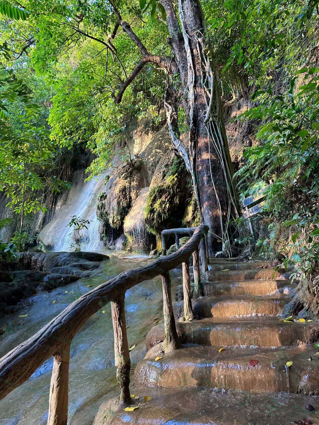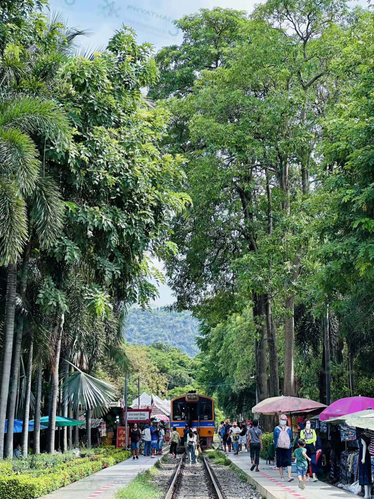 SAI YOI NOI 一日游 泰国火车旅游局为了提高Thai国内的旅游,于是开通了一条北碚府一日游的路线、在这里大家可以体验从早坐火车从曼谷出发到北碧府、一边坐火车一边游玩过程会经过好几个景点、期间呢也会停火车给大家下去玩一玩拍拍照~ 最终点站就是在北碧府的一个瀑布啦非常的漂亮,火车会直接停到大山上可以停留三个小时、绿植非常多切客气清爽,只需要一天的时间就可以游玩,大家可以提前买好票,火车票可以选择带空调的,或者是无空调的座位~ 旅游路线为 SAI YOl NOI 也是一个非常不错的泰式旅游体验哦~