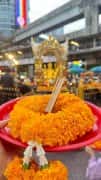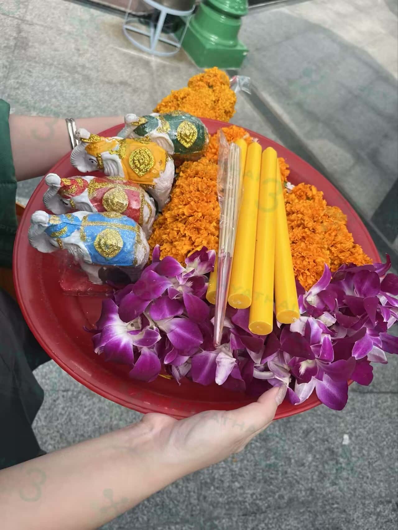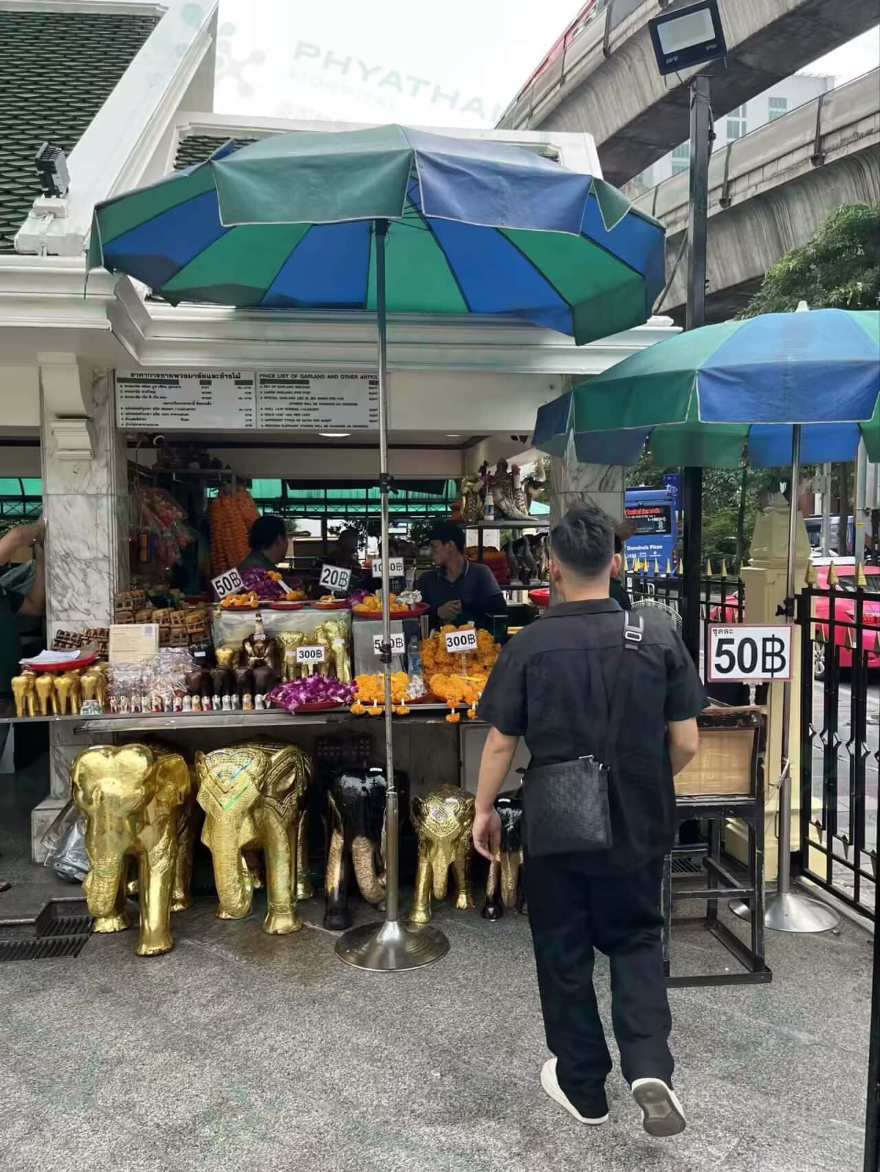 今天我想告诉可爱的姐妹们一下哈 如果来四面佛时必须带现金来哈 因为我们这里只接现金 不管是泰国还是外国这里供佛的花和香根的价钱都是一样的 从50泰铢开始 温馨提醒 别在四面佛附近买花买香根哈 因为它的价格太夸张的哈 拜四面佛的时候我们要从中间拜然后就向左转 一面一面地拜 我们这里也有四面佛经咒(中文版)所以就不用担心自己怎么念了哈 拜完后可能会有点热 那是我我们就可以在尚泰世界购物中心走一走哈~