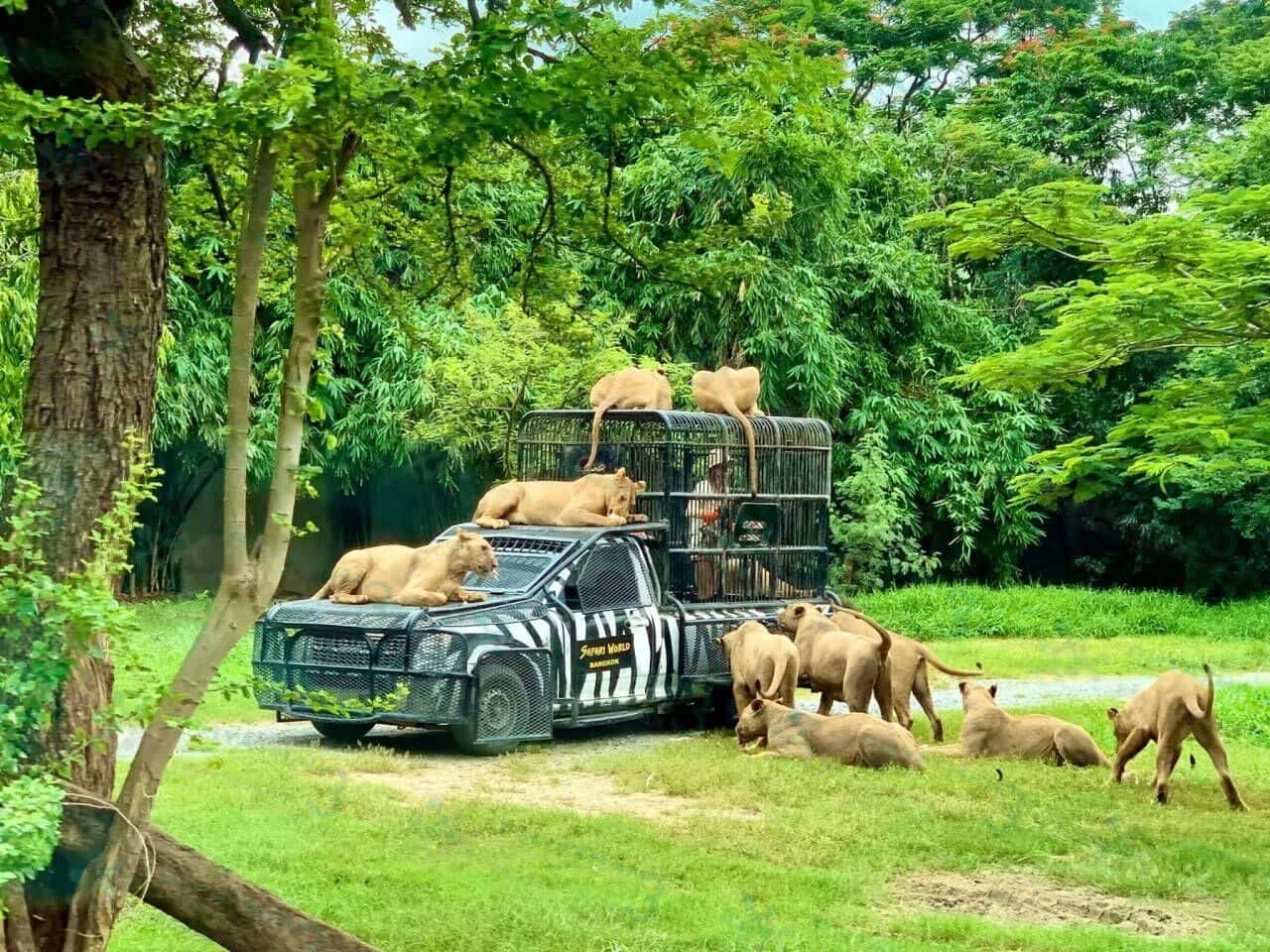 全亚洲最大的野生动物园,曼谷野生动物园 可以坐车游览,感觉就像去了非洲大草原 周边四处散养动物 全程都好兴奋!每一小时都会有一个动物表演,怎么逛都逛不完。姐妹们想去玩的话建议我们早些去 避免下午人流高峰期,在曼谷去哪里玩 不要错过这里哦~ 猩猩表演(10:00) 大象表演(11:00) SkyWar表演(11:45) 海豚表演(13:30) 海狮表演(14:15) 西部牛仔表演(15:15) 鸟禽表演(16:15) 还有滑水表演、泰国民间舞 等等出色表演,到售票处后别忘记跟工作人员领取票、地图跟表演时间表哦
