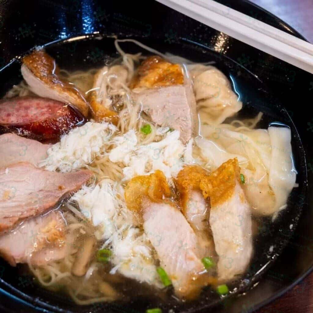 脆皮猪肉+红烧肉+烧鸭+蟹肉+鲜虾馄饨!这一碗的卡司媲美复仇者联盟! 位在 Thong Lo 区的这家 Bamee Kon Sae Lee 是当地小有名气的面店,1956 年开业至今70年,主打自家制的鸡蛋面,除了有卖各种烧腊组合的干面或汤面,还有各式烧腊饭、炒饭等。
