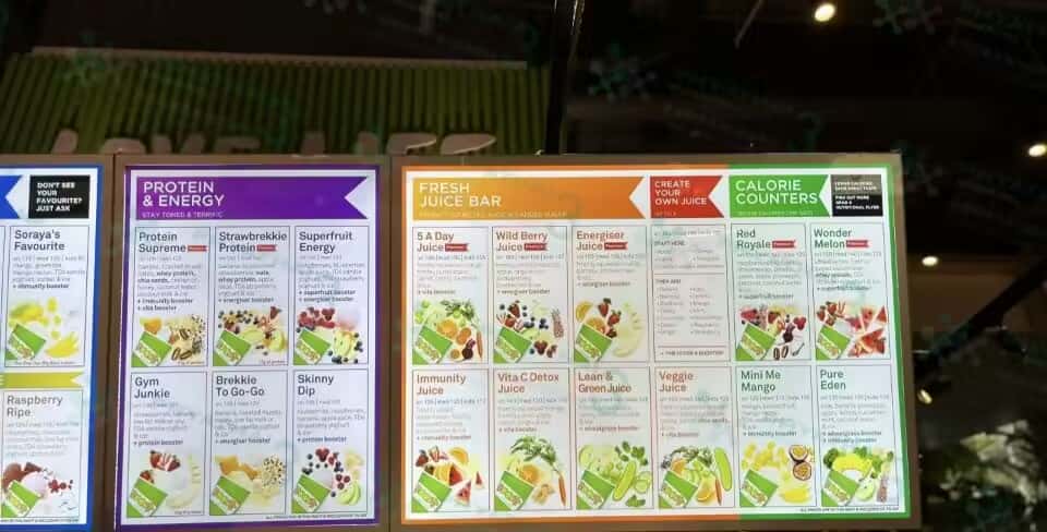 标志和鲜艳色彩搭配很容易找到 宣传是纯果汁 肉眼看是新鲜水果加上冰淇淋或者酸奶打的 反正 真的超级无敌好喝 配料也超健康的 价格在16-20人民币左右一杯 一分钱一分货 真的不会让姐妹们失望 一定要试试哦!