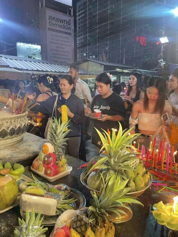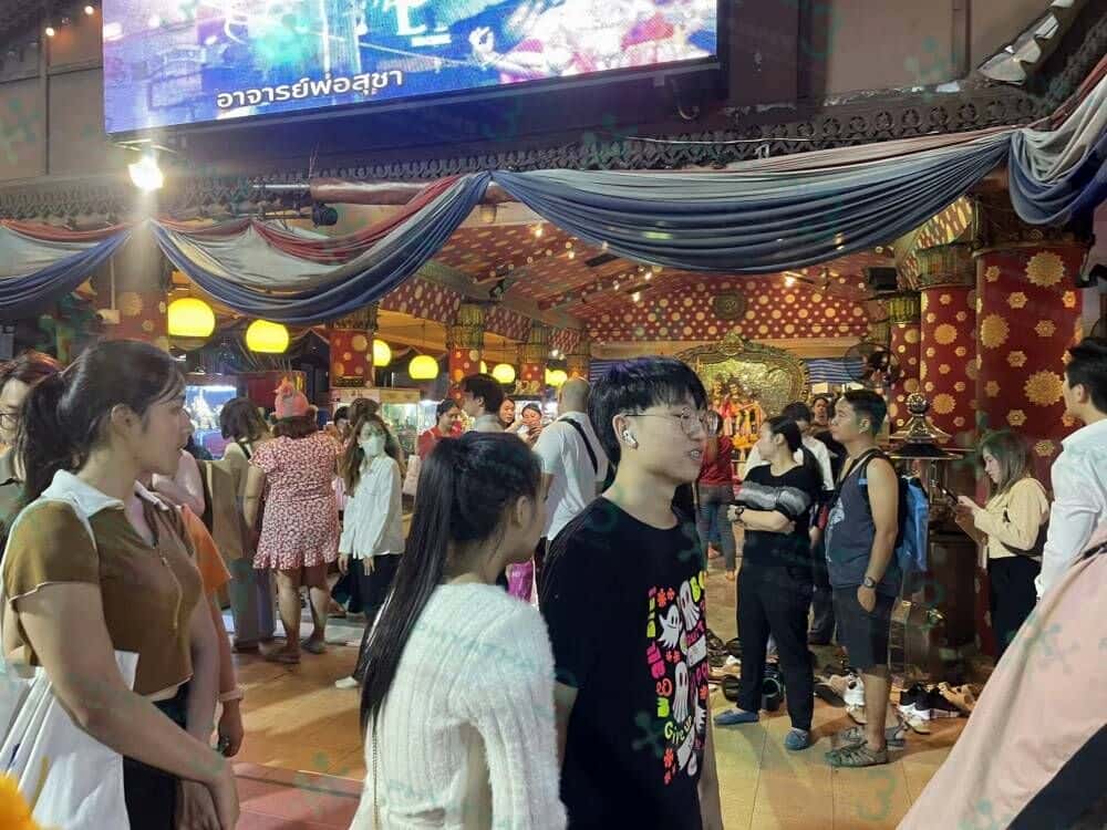 曼谷Huai Khwang 象头神 姐妹们你好,泰国曼除了有四面佛,还有一个很出名的象头神,它就在我所住的辉煌地(辉煌(Huai Khwang)地铁)十字路口的西北角,今晚突然来了很多人在路边排队等着进去看象头神,而且还来了很多中国游客,导致庙里专门用中文维持秩序和讲,庙的右边是占一条街,左边就是著名的“辉煌夜市” 这里的人流通宵达旦,马路对面是著名的吃螃蟹褒的建兴酒家总店,有兴趣的姐妹们可以乘坐地铁到Huai Khwang站,往1号出口出来就会看到了哈。
