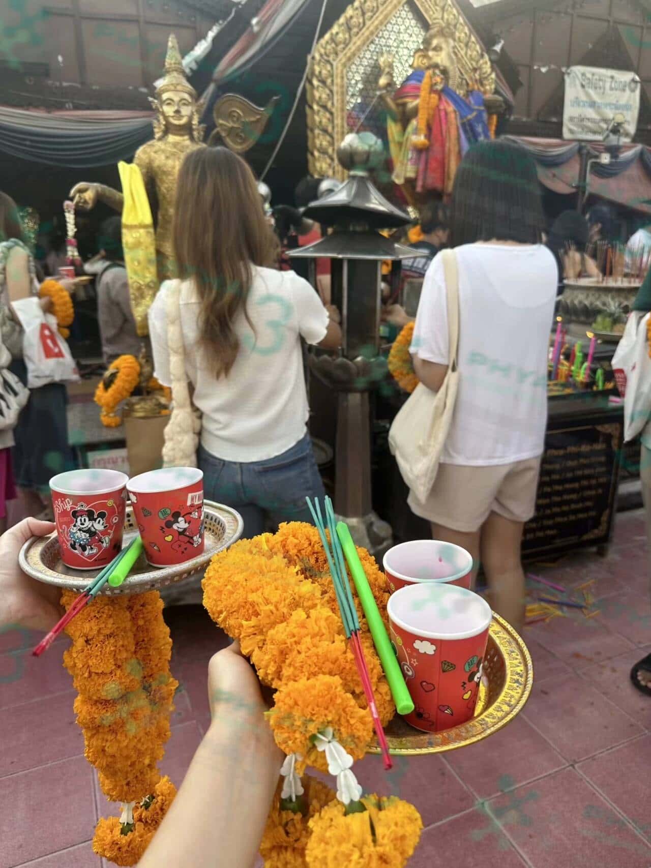 曼谷辉煌十字路口的象神 人巨多~据说象神和小老鼠使者喜欢好吃的 可以多带一些水果过去 他们更喜欢红色的饮料哦,最后最后排队和小老鼠使者说话啦 据说老鼠使者会把人们的愿望传达给象神 但人么的愿望实在是太多了 使者会忘记,所以每次说的时候对着右耳说然后捂住使者的左耳哦 路过可以来打卡一下哦姐妹们 留下自己的愿望