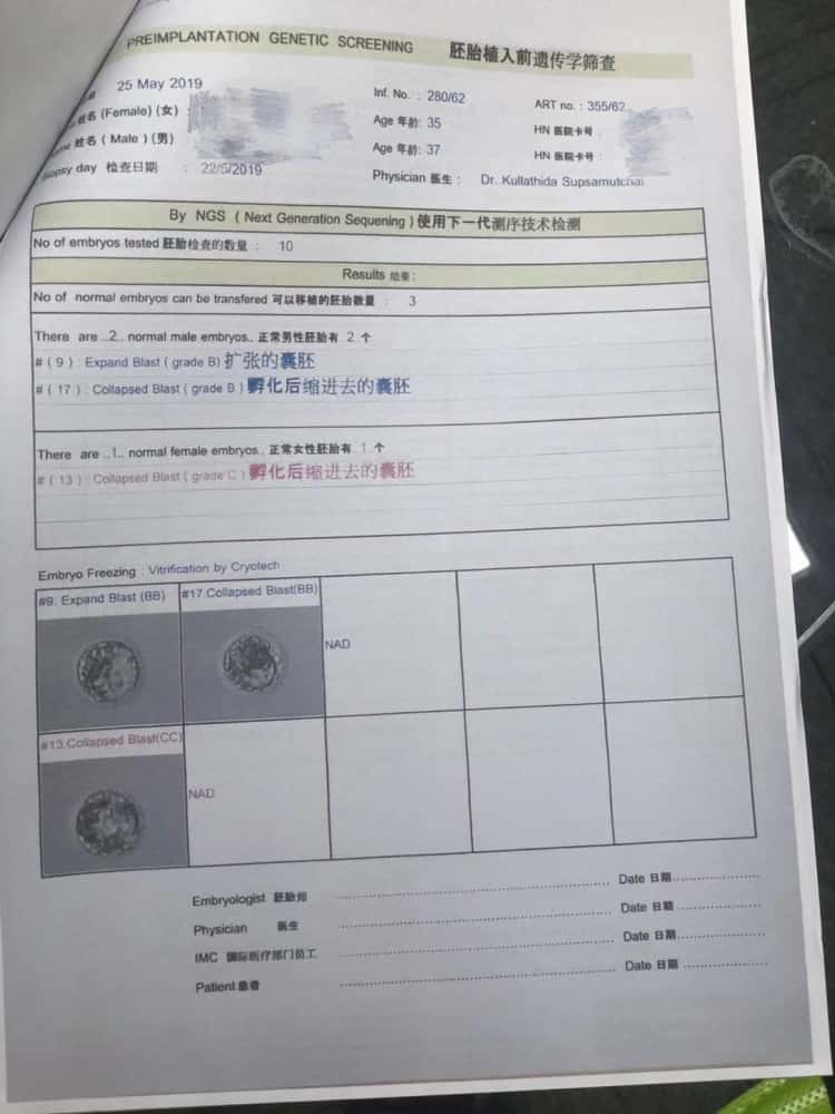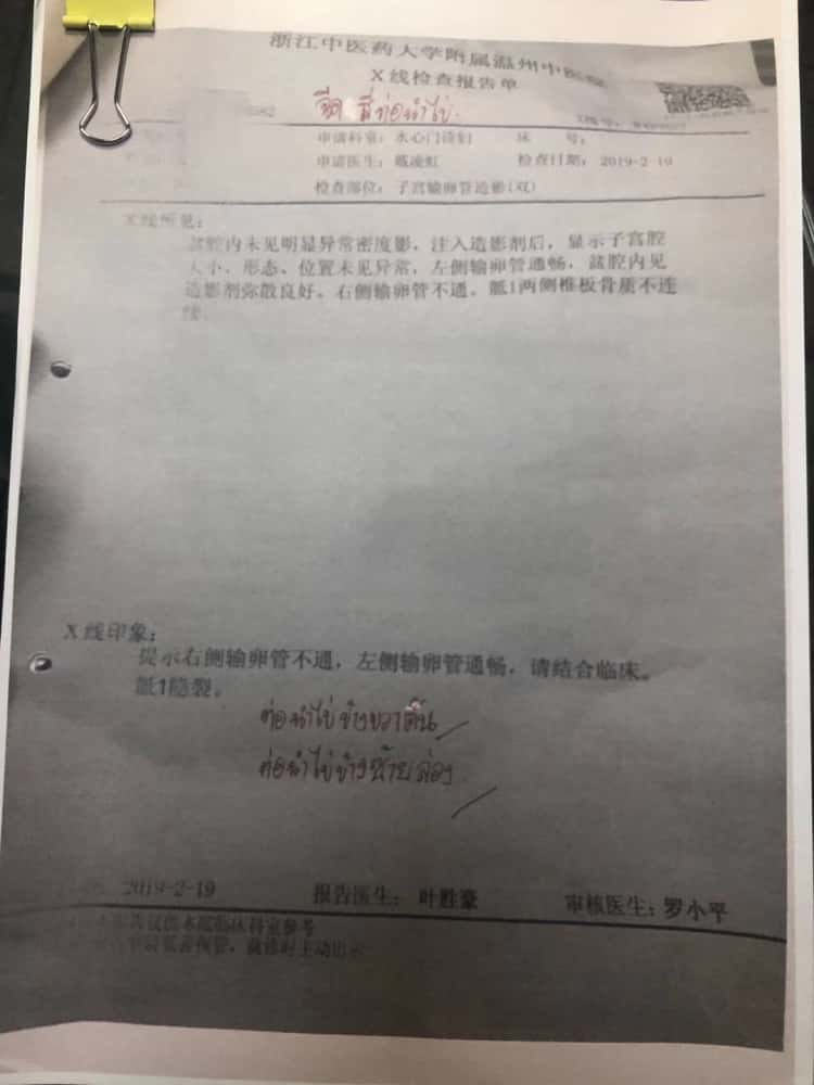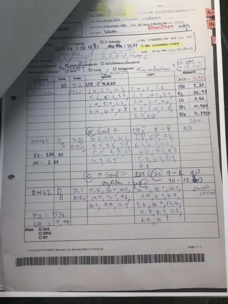 ①赴泰试管前,帕3市场部先将患者检查报告传到医院,并在报告上书写主治医生试管建议。