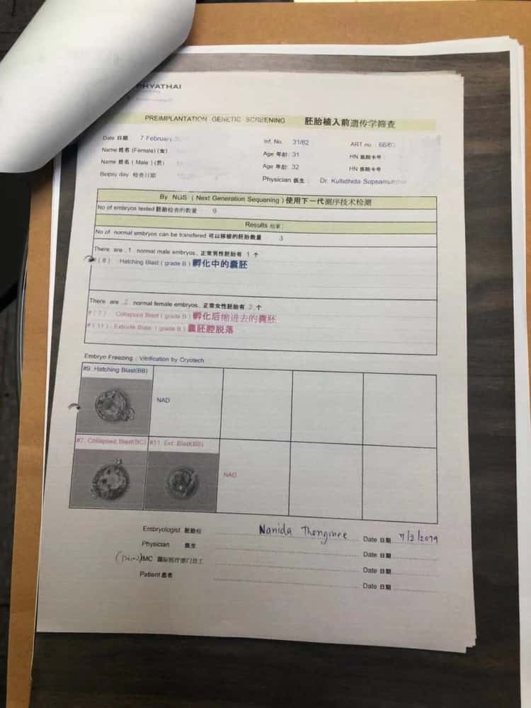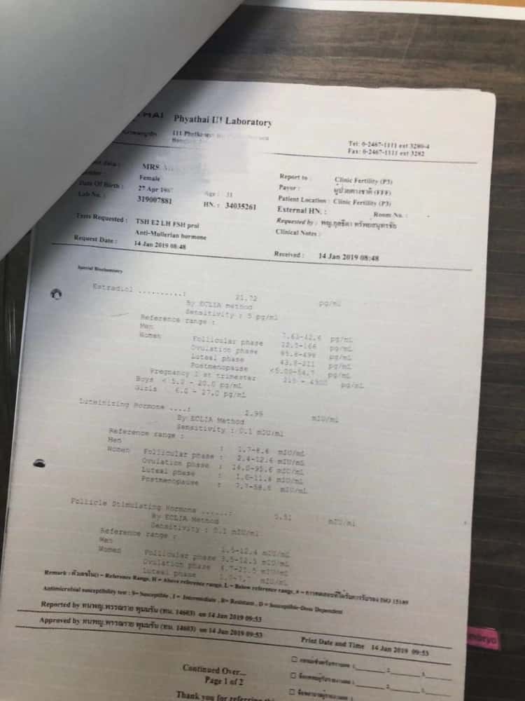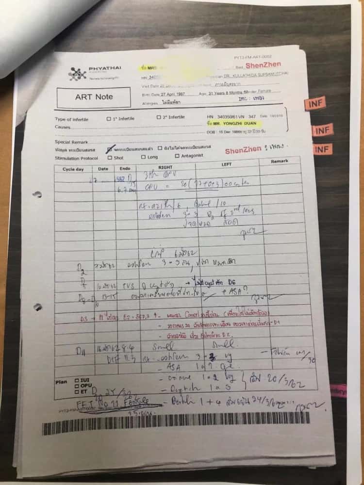 ①赴泰试管前,帕3市场部先将患者检查报告传到医院,并在报告上书写主治医生试管建议。