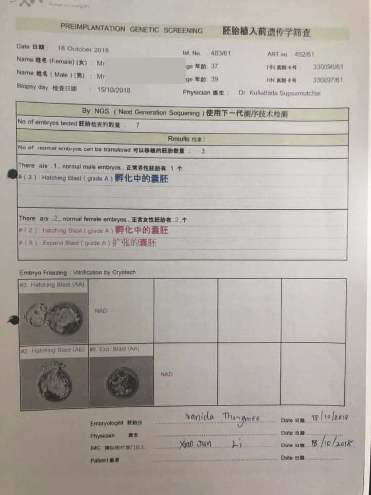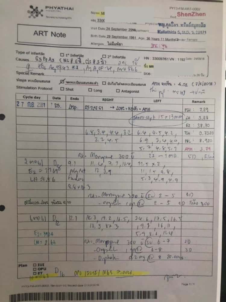 ①赴泰试管前,帕3市场部先将患者检查报告传到医院,主治医生在报告上书写试管建议。