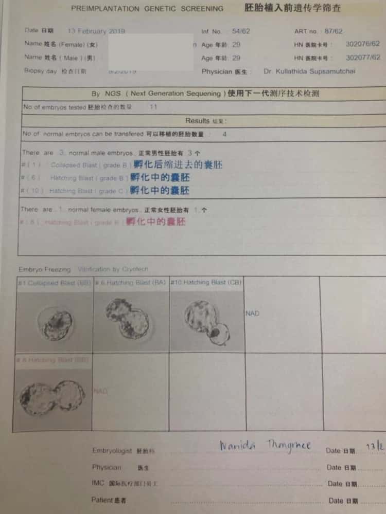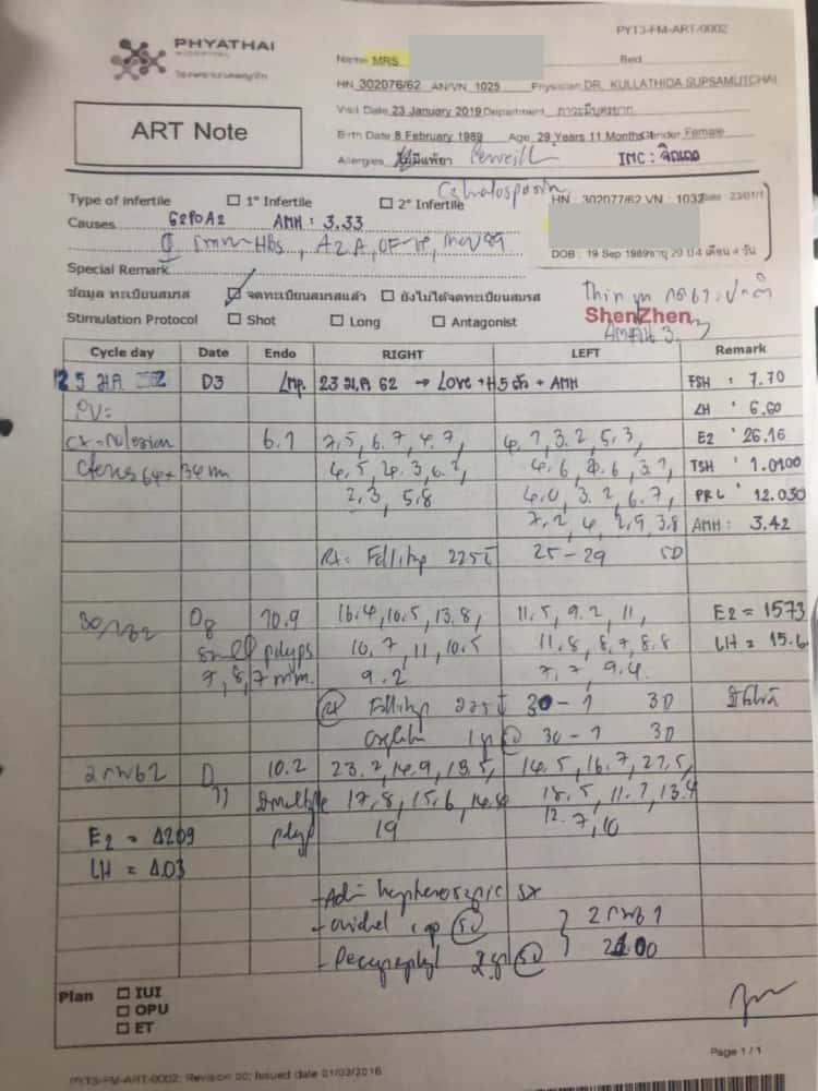 ①赴泰试管前,帕3市场部先将患者检查报告传到医院,主治医生在报告上书写试管建议。