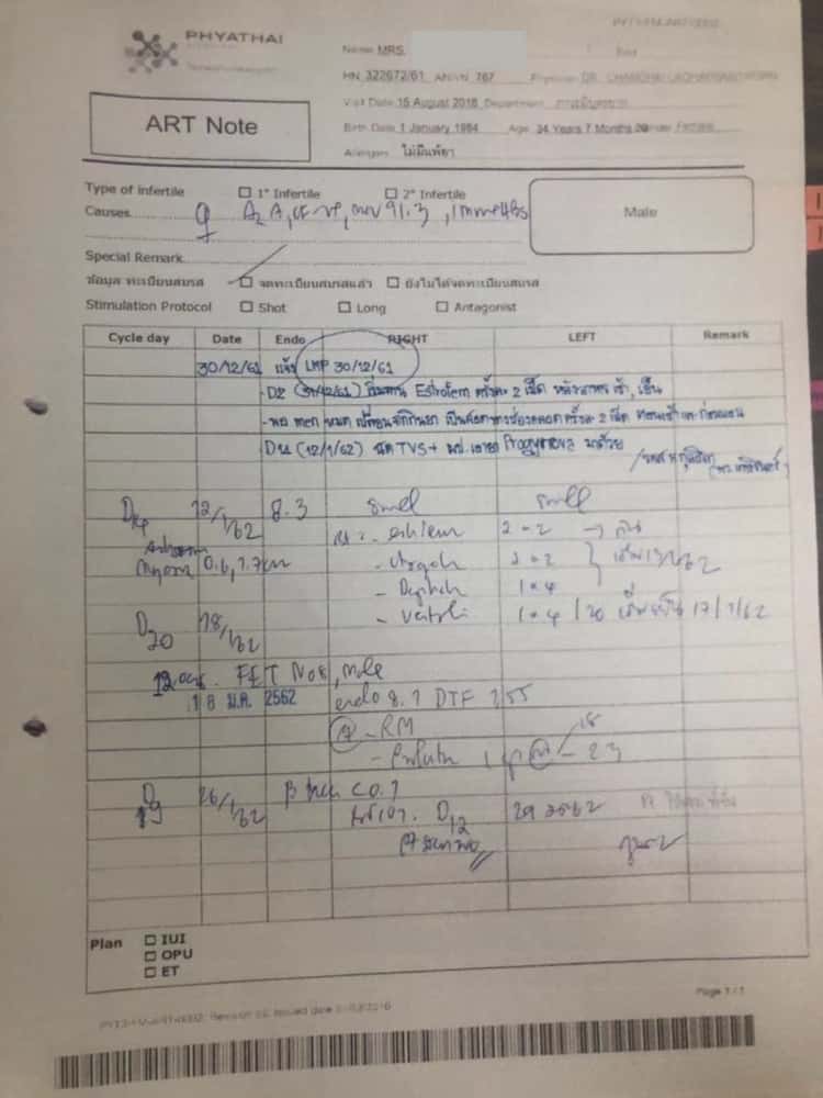 ①赴泰试管前,帕3市场部先将患者检查报告传到医院,主治医生在报告上书写试管建议。
