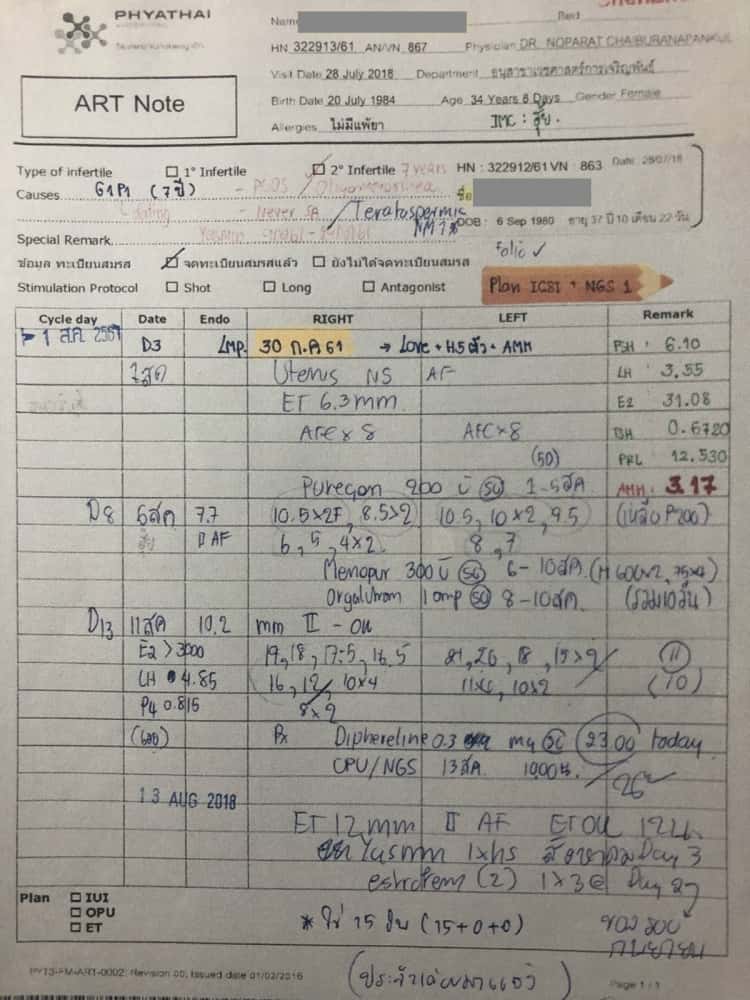 ①赴泰试管前,帕3市场部先将患者检查报告传到医院,主治医生在报告上书写试管建议。