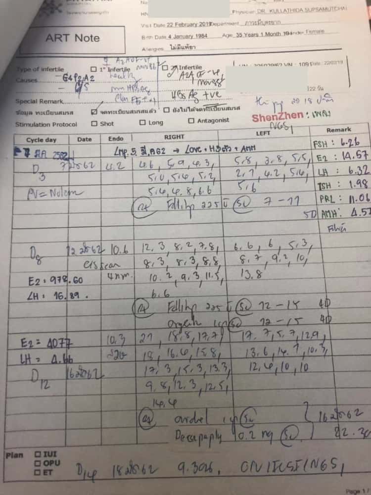 ①赴泰试管前,帕3市场部先将患者检查报告传到医院,主治医生在报告上书写试管建议。