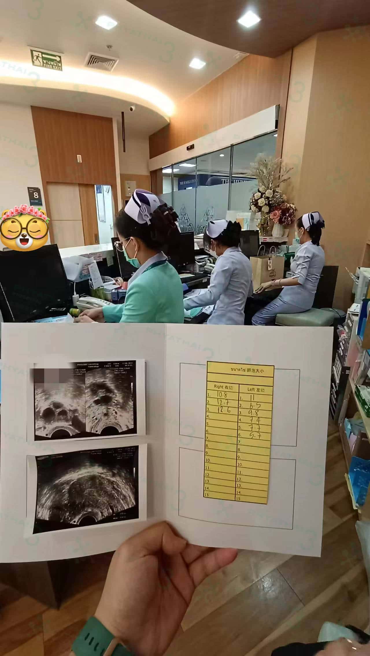 43岁高龄大姐姐,经过5天的促排针后今天再次见诊医生。医生看到雌二醇血值报告还算是不错的,阴超检查一下卵泡发育总算没有让人失望,发育的挺好,相对均与理想的。女士看到这次的检查报兴奋的说到够了,对目前的促排效果挺满意的,希望这些珍贵的卵泡都能好好发育预祝女士早日好孕。