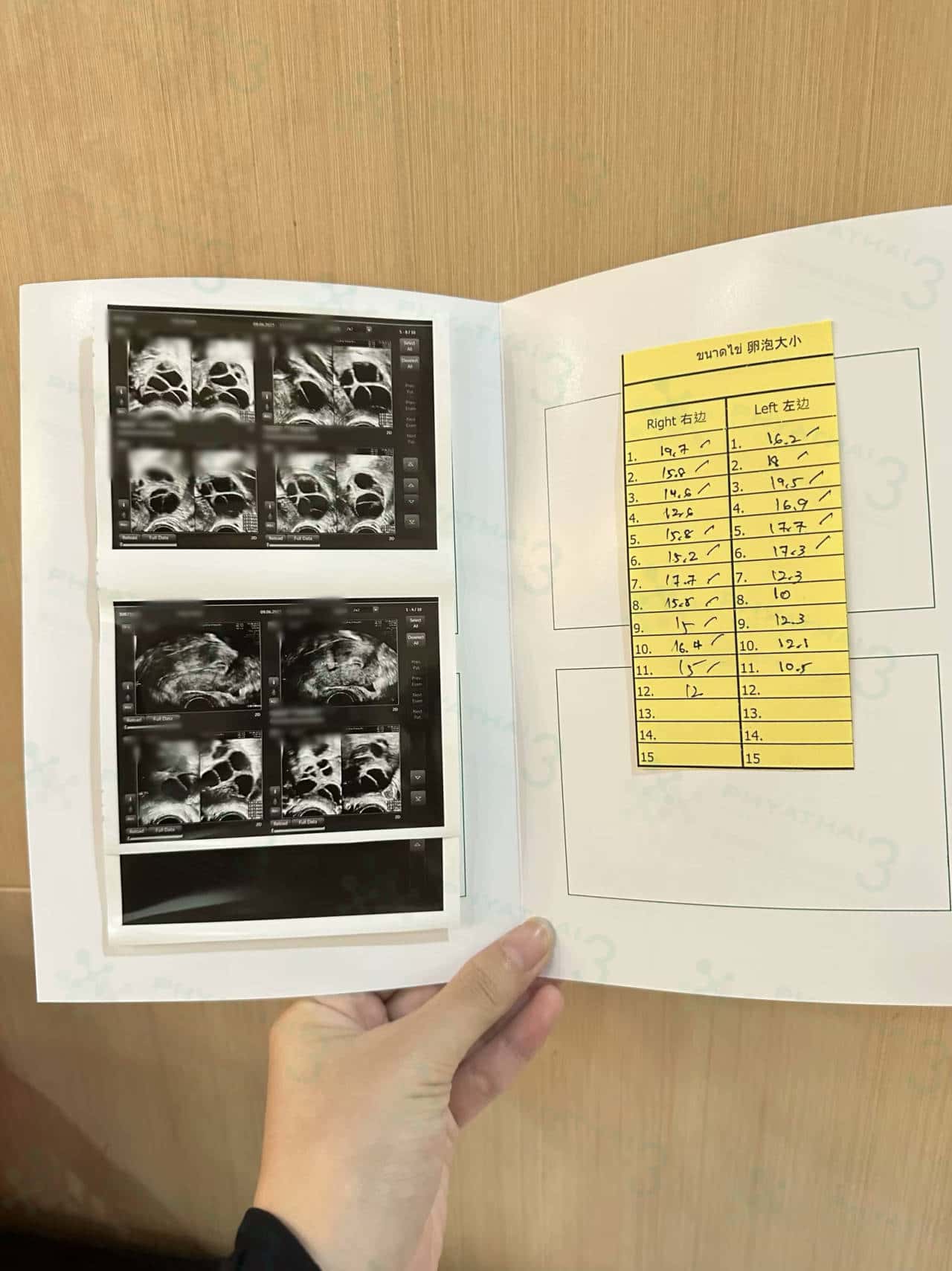 第三次见诊啦。 今天早上女士来医院抽血等报告出来,我们就进去面诊啦,这次女士的雌激素(E2)上升的很漂亮,医生阴超检查看了卵泡,预估能取16枚左右,但是为了争取更多的卵泡发育就决定了让女士再打1天的促排针和保卵针,女士卵泡比较多为了预防取卵后腹胀M医生也会要求女士少喝水、吃鸡蛋白、取卵当天也会给女士打缓解腹胀针的,M医生真的很细心,都考虑的很周全,很赞哒,下次就来确认取卵的时间了,希望我们能顺顺利利的噢