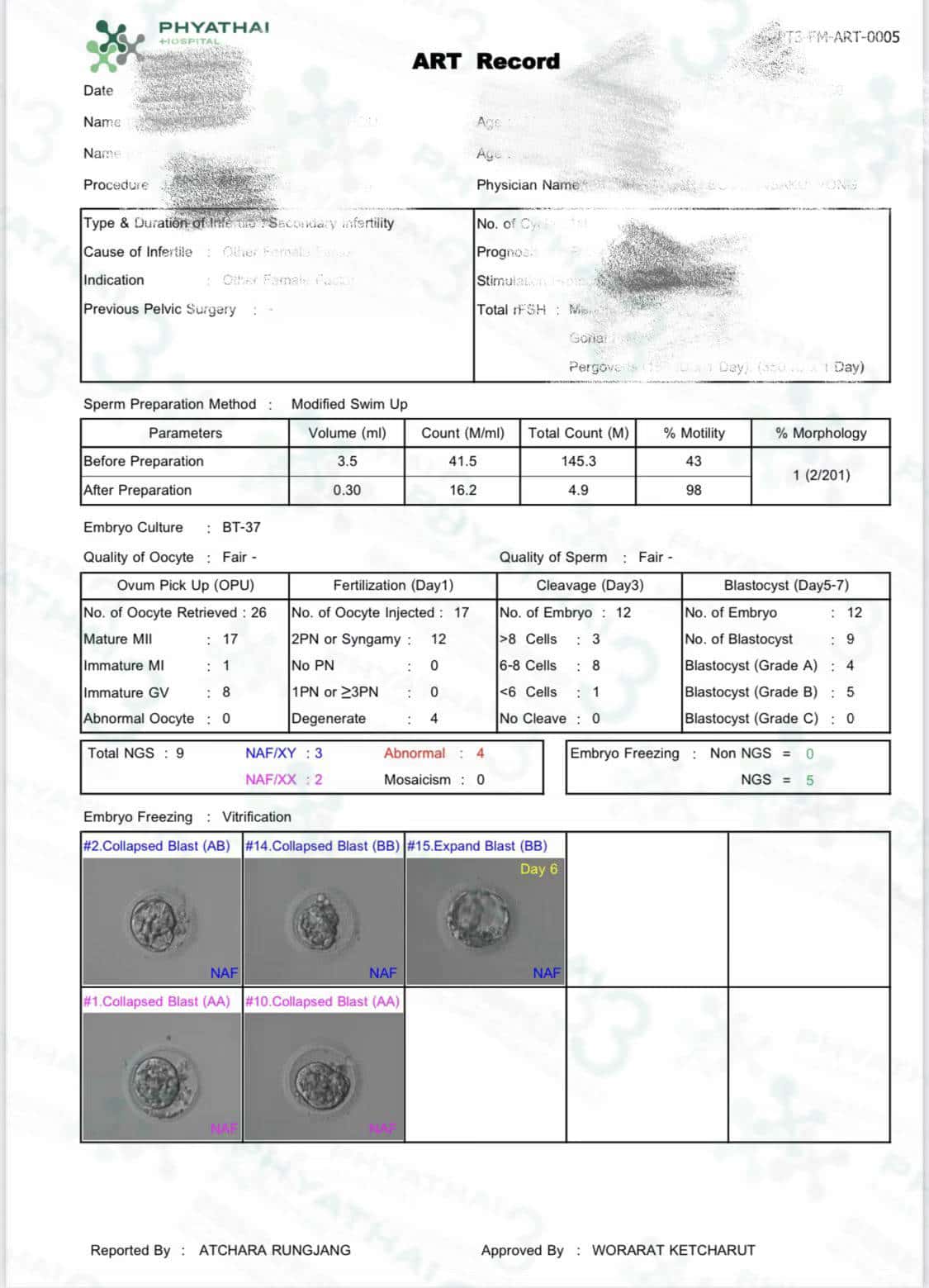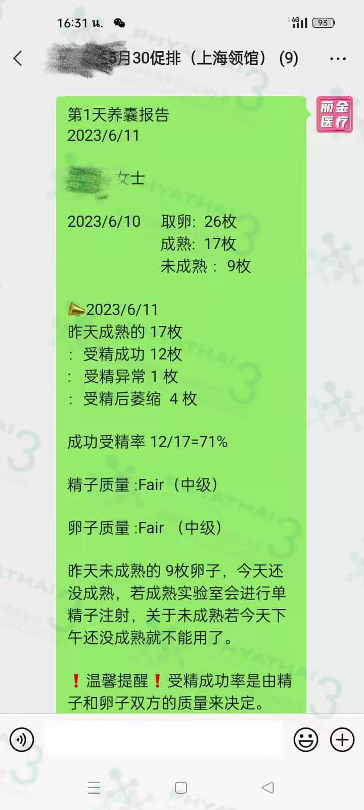 终于等到染色体报告出来了,结果出来超级棒,有3男2女健康能移植。国内多次失败,养囊结果不好。 患者说一次来帕雅泰3医院治疗不孕不育症非常顺利,受精19能养成9。胚胎师太厉害了,一次就能有很多胚胎等待移植。 胚胎级别也是挺不错。 现在已经关了第一关,后期移植一次好运接小王子回去。