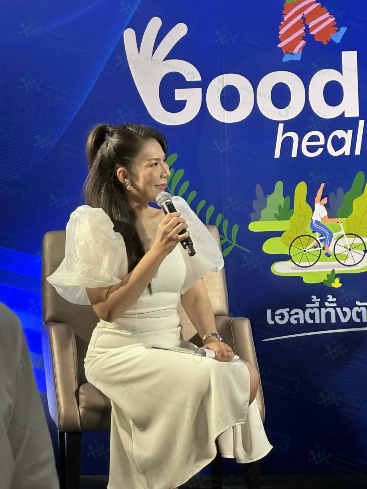 翻译医院前线报道~今天又有活动啦 今天的活动是关于如何正确拉伸的一个话题,现场请到的泰国女明星从事忙碌的演艺事业,来讲述以及分享如何使用正确的瑜伽来拉伸的一些信息分享~主持人也是泰国当红的主持人到现场采访,除此之外现场还有好多保健相关的产品姐妹们到了可以走走逛逛看一看哈