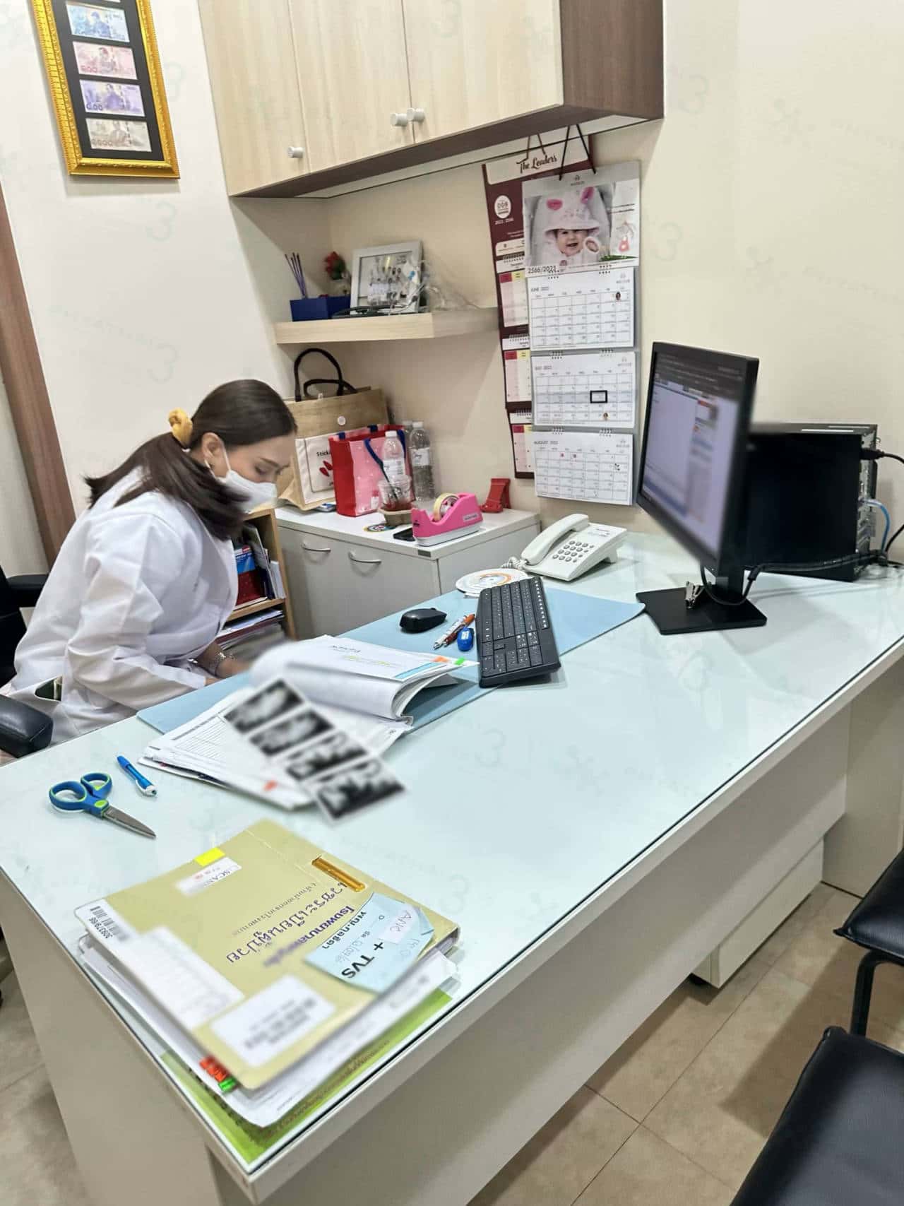 一般取卵当天医生会开调理子宫内膜药给我们带回国在移植当月开始服用。但是小姐姐促排之后就没有回国内 想在泰国调理子宫内膜 让库医生亲自检查。今天我就给小姐姐预约来跟库医生面诊咯。根据今日阴超检查,目前的子宫内膜厚度是5毫米。库医生说内膜已经增厚,但是到月经来的第12天内膜应该达到8毫米。今天医生就给小姐姐开涂药加着用一下,希望下次见诊我们内膜会增厚达标哦
