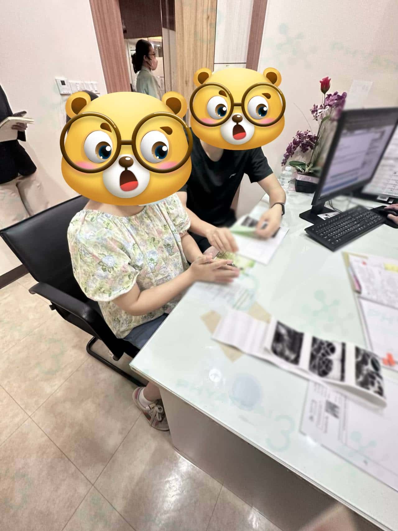 第四次见诊,确认取卵时间啦, 今天女士和先生过来复查,看一下昨天我们打的促排针有没有达到M医生的标准,阴超检查结果非常理想,我们等的小小的卵泡已经长大了,M医生说差不多都可以用的啦,嘻嘻~不错哦,今天就打夜针了,夜针医生也安排打3 针以争取最多数量的成熟卵子,后天就要取卵啦,我们取卵加油!希望一切顺利,女宝儿多多
