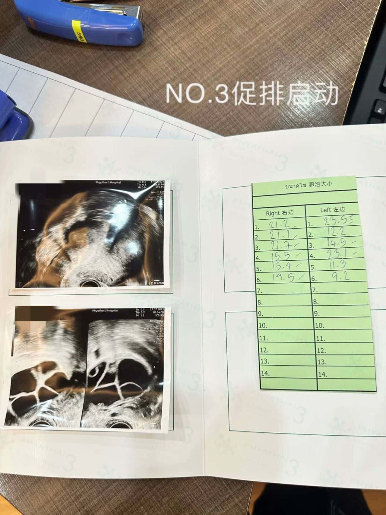 库医生非常牛的促排方案! 第一天到医院阴超基础卵泡偏少5枚,我们通过打促排针10天,今天是第三次见诊阴超看看卵泡发育。结果棒棒 12枚发育良好,卵泡不仅增大 还有增多了不少呢。有些患者医生再增加药量卵泡都不肯吸收,但是小姐姐的卵泡吸收药能力太绝了。医生安排我们后天早上8:00进行取卵,今天晚上再次来医院打夜针吧