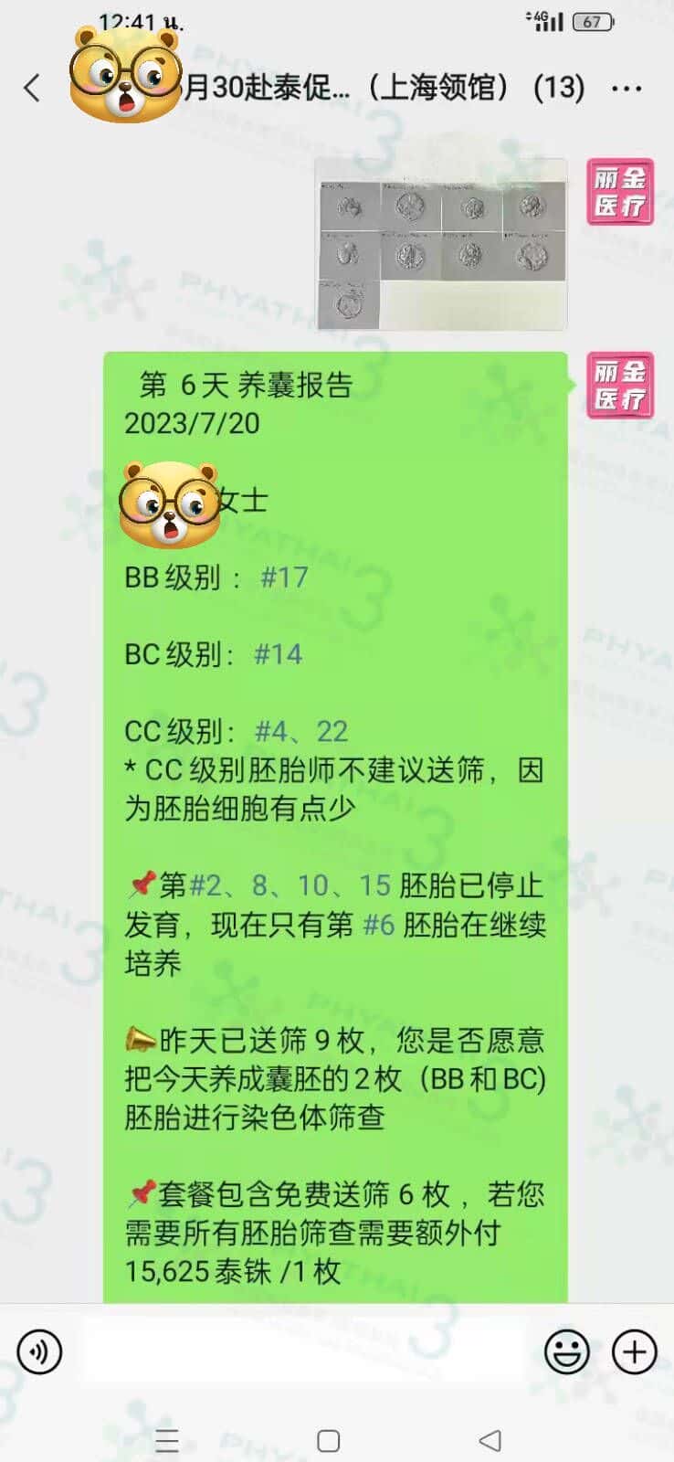 女士AMH 1.32 年龄小但开始早衰基础卵泡少的患者, 今天第六天养囊有成囊11 枚 都是A和B级别,另外是CC级别还没算上。哇哇胚胎级别不错呀, 其余胚胎现在胚胎师还在继续培养为了争取有更多的囊胚。 帕雅泰3医院是一个正规的医院,医院有自己的实验室。不仅实验室和胚胎师技术好医院也获得多项奖项,帕雅泰3医院的实验室得到国际标准认可。 养囊也是试管很重要的步骤之一,哪位试管姐妹想有胚胎成囊多多必须选择来我们帕雅泰3医院噢。选择了我们一定不会给您们失望。 接下来期待等筛查报告希望女士有多多健康胚胎能移植。
