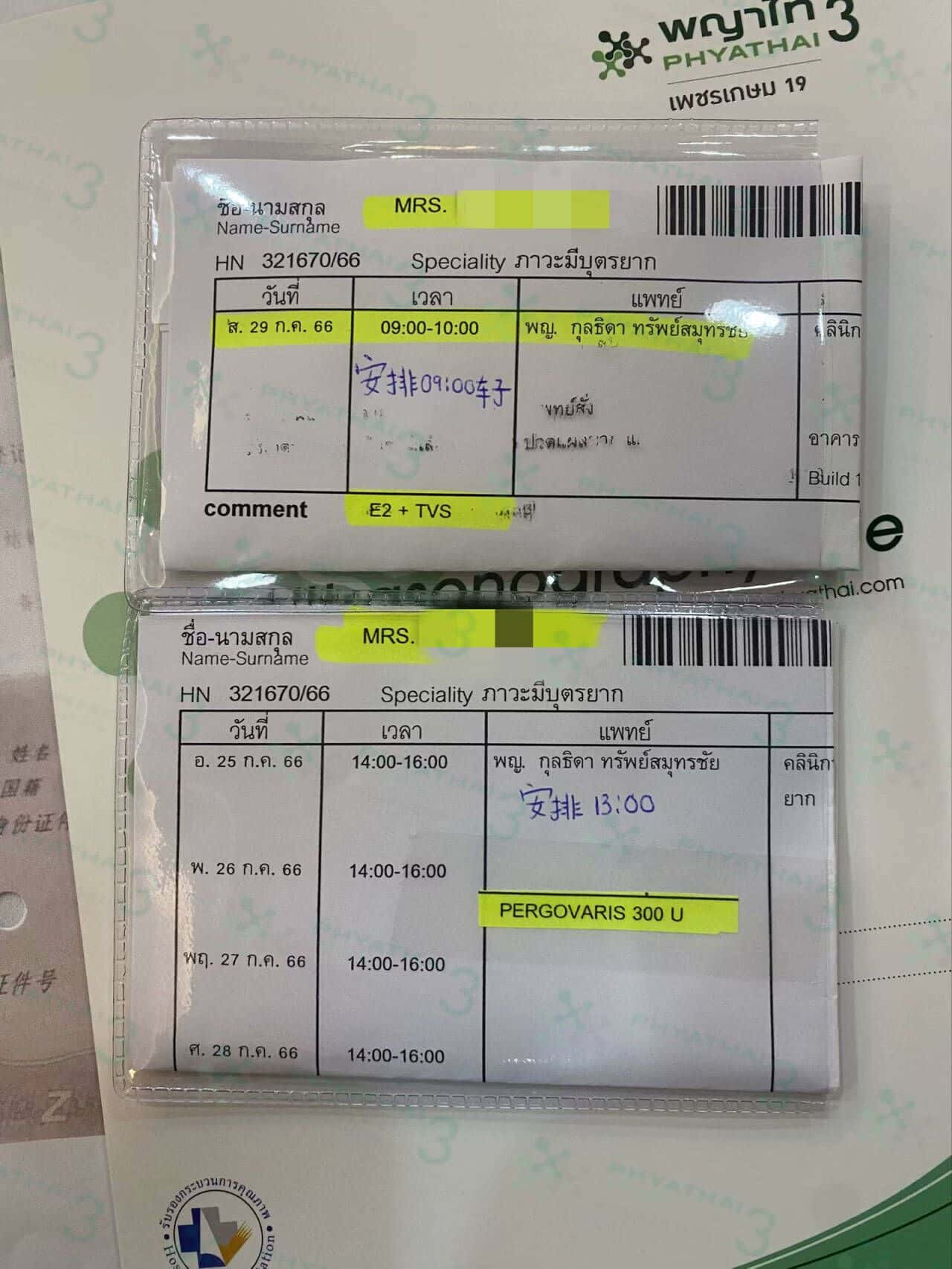延迟的月经终于来啦!从四川来的小姐姐赴泰等待月经,小姐姐心态超级好 月经延迟了都不会焦虑而且还出门到超市逛一逛 买一些调料在酒店做火锅,还说下次他们过来移植会从国内自己带调料来请我们翻译团队吃饭 真的好期待啊,第一次见诊后基础卵泡数量12枚 医生根据情况安排打5天倍孕力300 U 的促排针,希望卵泡吸收能力良好 小姐姐加油哦!