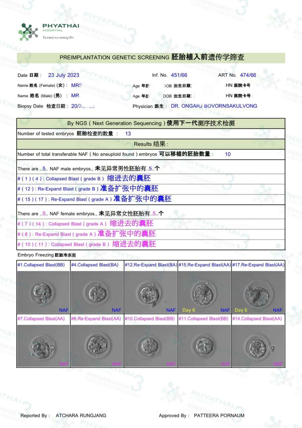 噢莫!就问问谁不羡慕,小姐姐送筛13 枚,今日染色体报告显示有 10 枚健康的胚胎,而且很均匀,有 5 男 5 女, 5 对双胞胎呀姐妹们!都是成双成对凑成一个 “好” 字,可把小姐姐和先生激动坏了,准备调理好身体就可以带着大宝来接二宝咯