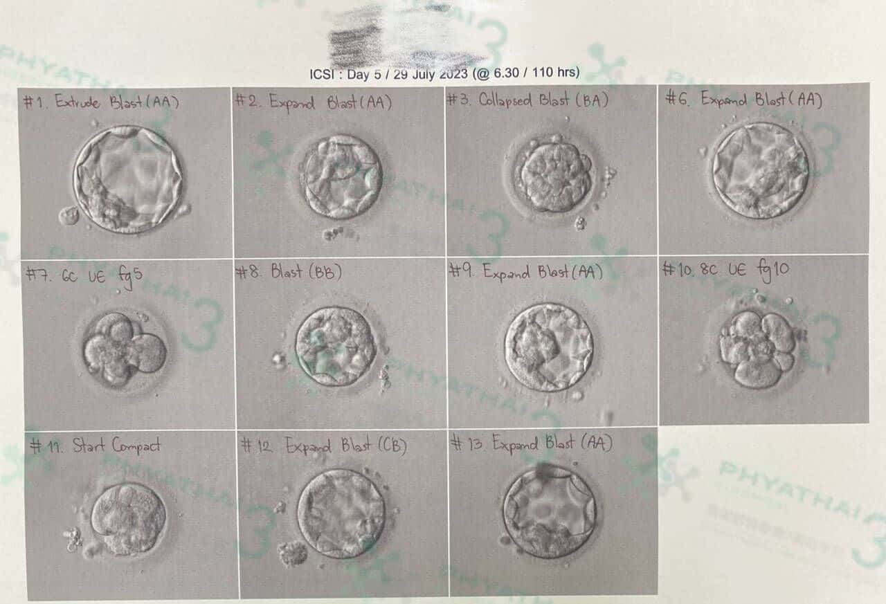 amh 2.96的患者 受精11 ,第5+6 天养囊 目前总共送筛 8 + , 昨天第五天养囊有7枚能送筛胚胎级别也是棒棒 。 今天是第六天昨天的CB 级别已变成BA 了, 胚胎师养囊技术太厉害了吧 。从C级晋升到B级,如果不是有多年经验的高手养囊,根本不可能这样晋升,因为B级和C级的成功率相差很大。现在其余胚胎还正在继续养明天会出更新报告 。 希望明天还有多多胚胎成囊噢。