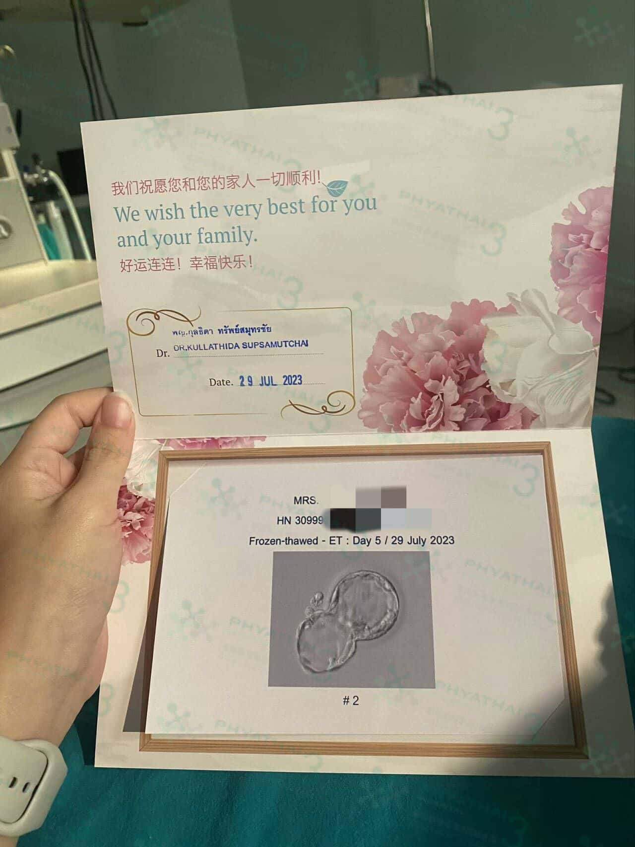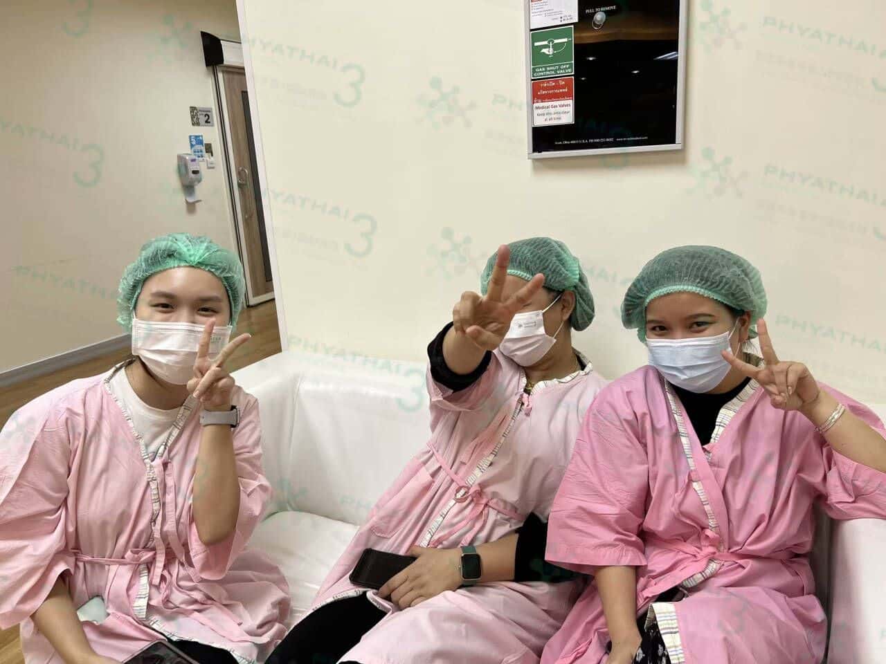 来移植的3位小姐姐在手术室外连连喝水 今天来移植的小姐姐心态超好,13:00准时上医院面包车后就已经开始慢慢喝水 结果到医院移植手术室时有些尿急,医生说膀胱很充盈 最后决定让小姐姐先去排一段尿再进行移植手术,上厕所后再B超看尿度时 医生竖起大拇指跟小姐姐说她很棒,排尿后膀胱还是依然这么充盈!移植手术顺利完成,期待HCG血值漂亮上升