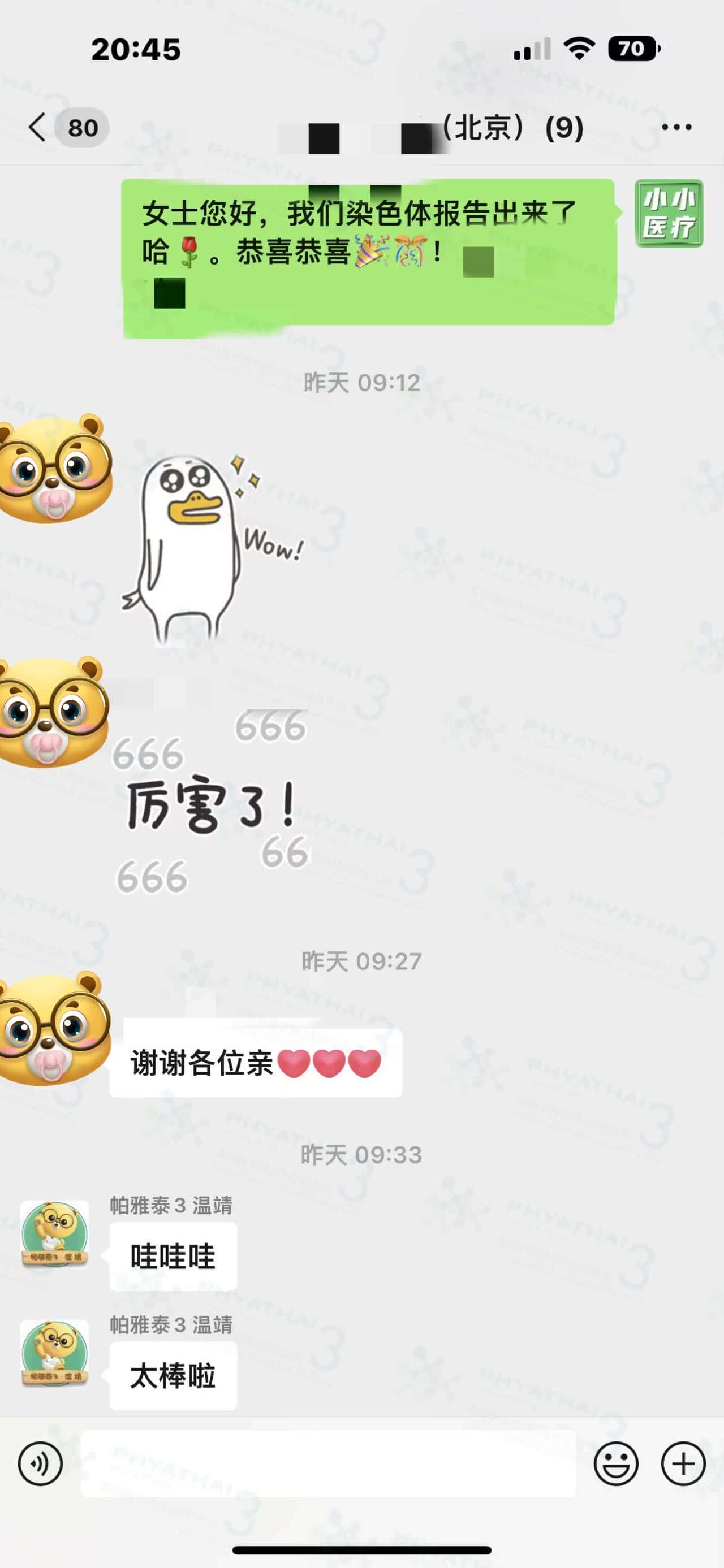 送9得8,接下来等小姐姐回来移植咯! 今早实验室通知染色体报告,哇塞!太厉害了 我们有8枚胚胎可以移植 6枚小王子2枚小公主 加上全部胚胎都是A级。取卵当天医生灌注生理盐水看看子宫环境良好,接下来等第二轮月经来开始调理子宫内膜吧!原一切顺利,一帆顺风。下次见哦