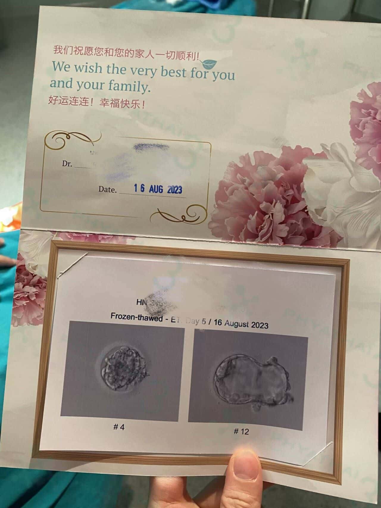 今天可爱的患者来移植胚胎。等待胚胎移植时女士说谁说泰国不安全呢?我觉得没有网上那么扩张啊。现在我天天都去逛逛打卡。你看,我昨天刚去暹罗天地坐船吃饭。风景很棒,食物超级美味 ,前天去唐人街。女士说胚胎移植过程中,一定要放松。也会增加成功的机会。 今天移植的流程非常顺利,我们希望这段时间胚胎着床顺利。