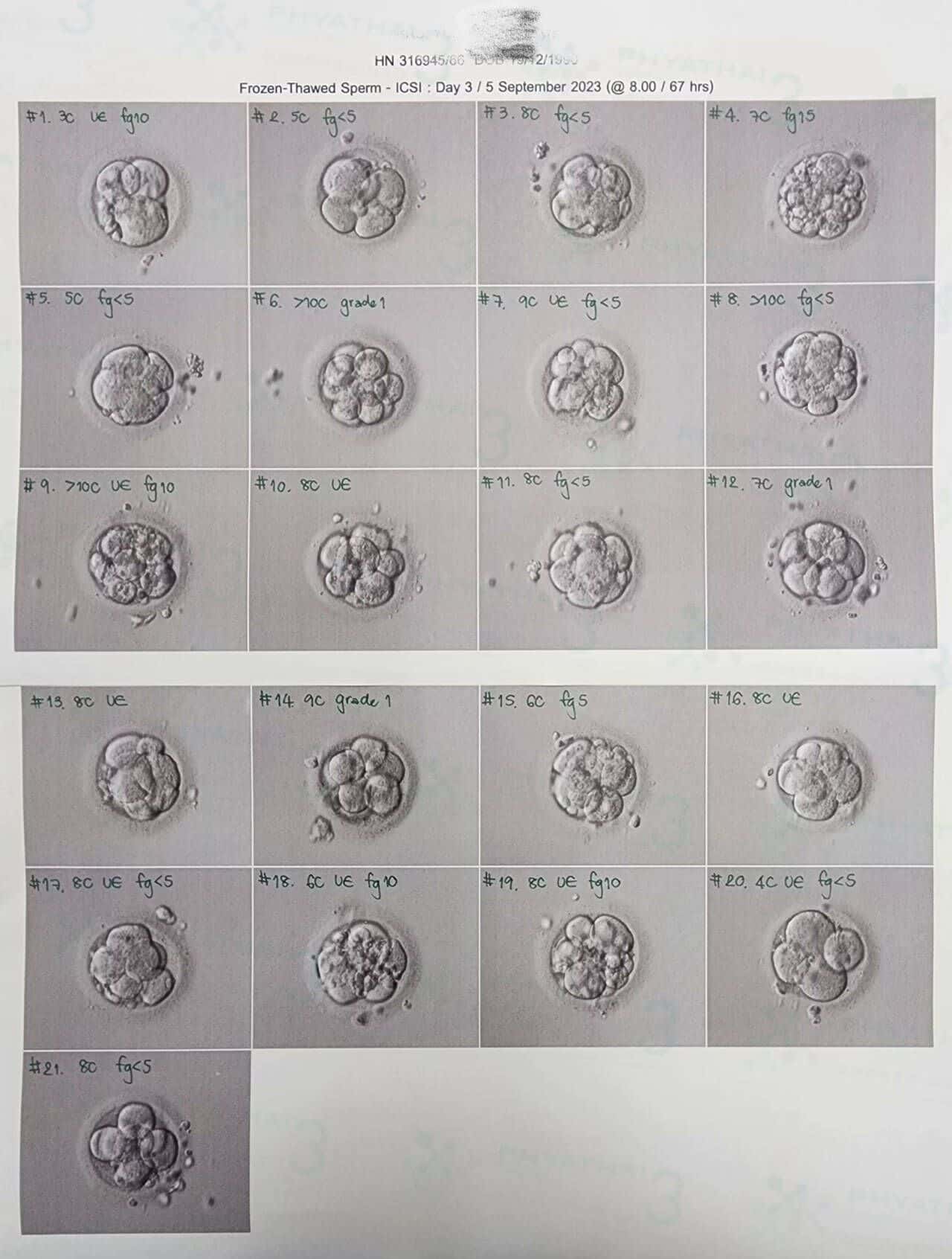 女士说这是第一次做试管的经历带来了美妙的结果。因为是第一次做试管就有很多事情需要考虑,最后就选择了帕3医院,因为比泰国其他机构最靠谱,最重要就是正规的医院和有自己的实验室。 我们感谢您对我们治疗不孕不育的信任和信赖。感谢您对医生治疗的配合,直到取得今天这样的美好结果。取卵当天一共取出来23枚,成熟21枚,受精成功率100%,今天第五天养囊目前总共送筛13枚,还在养8枚。不愧是在泰国这个行业养囊最好的实验室和胚胎师技术都非常厉害。希望送筛一切顺利。任何想要像这位患者一样获得良好效果的人,都必须选择帕亚泰3医院噢