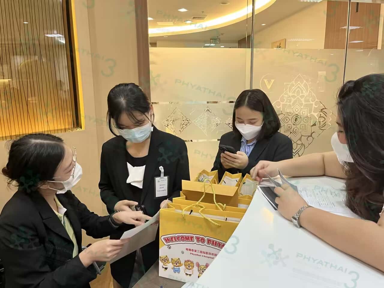 我们帕3到处都是这样人山人海,虽然是个大清早,不过也有许多患者们选择来帕3治疗。我们翻译除了准备送小熊外,还一直准备蛋白粉当小心意给女士们回酒店多多补充蛋白质~服务员们也都是热情地准备接女士们来的哈
